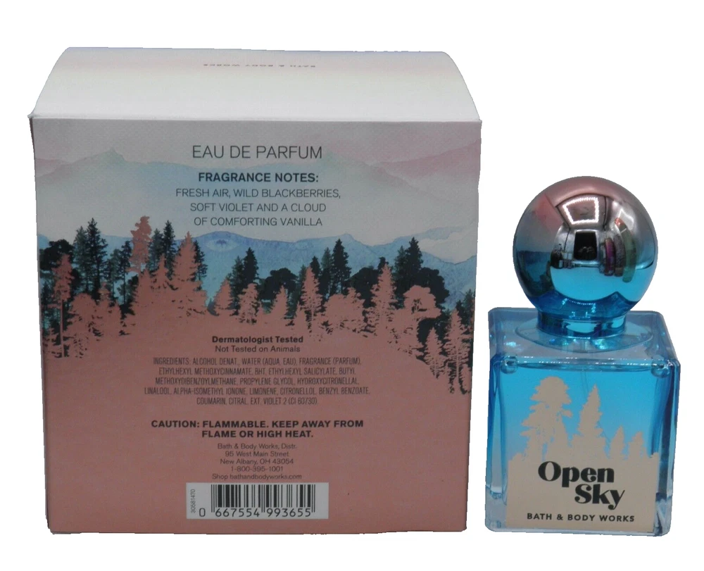 Formulation: Spray UPC: Does not apply Scent: OPEN SKY Fragrance Name: OPEN SKY gtin13: Does not apply Volume: 1.7 fl oz Type: Eau de Parfum Brand: Bath & Body Works Size Type: Regular Size
