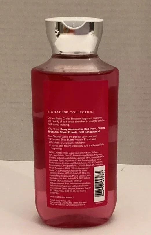 Volume:10 fl ozBrand:Bath & Body WorksScent:Cherry BlossomDepartment:Unisexgtin13:0667537453985UPC:0667537453985Product Line:Bath And Body Works Cherry. BlossomFormulation:GelType:Shower GelBody Area:Body, FaceSize:RegularFeatures:Animal Cruelty-Free, Contains Vitamins, Discontinued Product Line, HydratingSkin Type:Dry, Oily, CombinationCountry/Region of Manufacture:United States