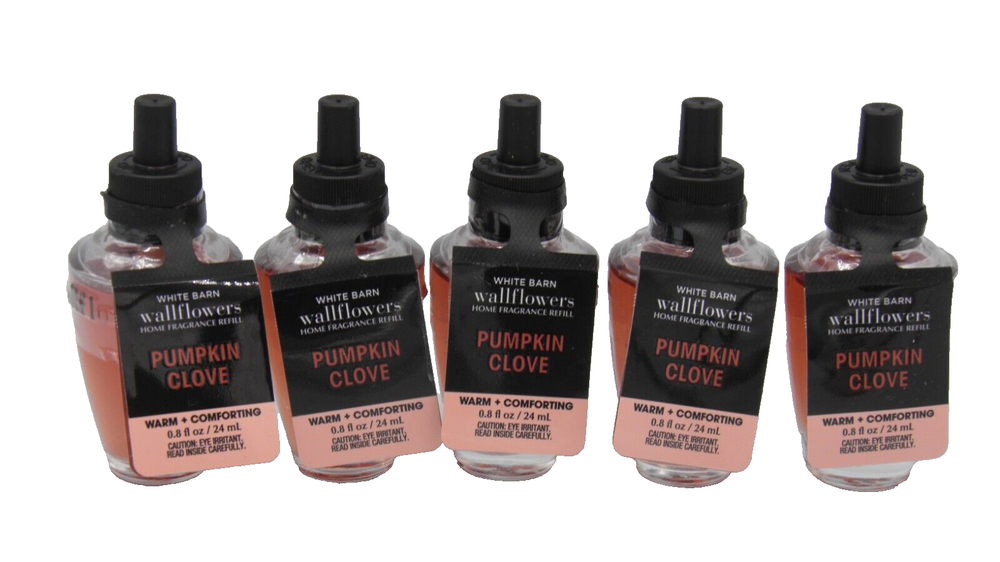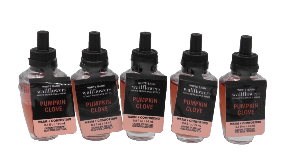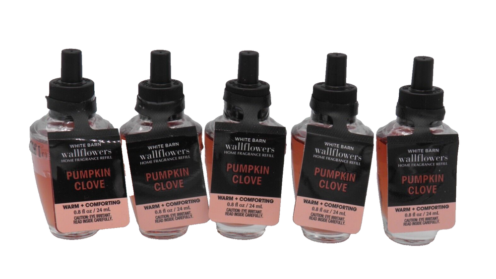 Scent: PUMPKIN CLOVE Power Source: Wall Plug-In Type: Refill Bulb MPN: PUMPKIN CLOVE gtin13: Does not apply Intended Use: wallflower plug Occasion: ALL Number in Pack: 5 Installation Area: Wall Style: WALLFLOWER REFILL BULB Brand: Bath & Body Works Form: Bulb Volume: .8 fl oz Material: Glass UPC: Does not apply