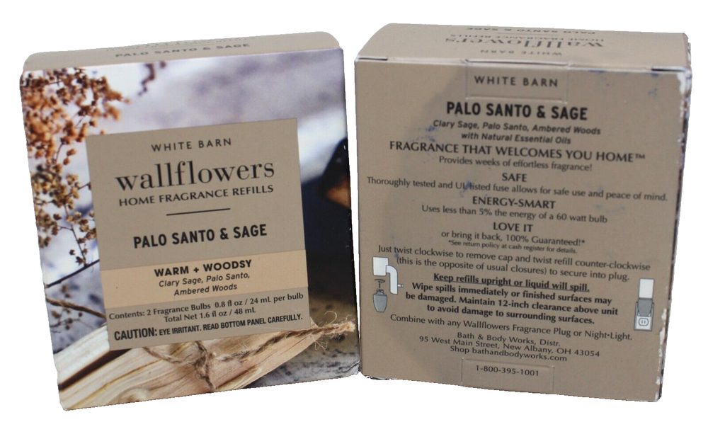 <div style="text-align:center"><img src="http://ti2.auctiva.com/sw/java.gif" border="0"><br><table align="center"><tr><td><a style="text-decoration:none" href="http://emporium.auctiva.com/Dimpl28" target="_blank"><img src="http://ti2.auctiva.com/sw/browse2.gif" border="0"></a></td><td height="21px" valign="middle" align="center"><font face="arial" size="2"><b><a href="http://emporium.auctiva.com/Dimpl28" target="_blank">Dimpl28</a> Store</b></font></td></tr></table></div> <img src="http://ti2.auctiva.com/web/aswCredit.gif" border="0"><br><a href="http://www.auctiva.com/?how=scLnk0" target="_blank"><img src="http://ti2.auctiva.com/images/sc1line0.gif" border="0"></a> Bath & Body Works Palo Santo & Sage Wallflowers Plug In Refill Bulb Lot of 4 We have been selling on eBay since 2002 and have always had a good standing with eBay due to our integrity. All our products are 100% authentic. To sell anything other than that is illegal and immoral. We do not ship internationally unless it's to a military address, in which case, we are honored to do so. All orders are double checked before shipping out to avoid any mistakes. We are honest and upfront about items and the condition of items. Once an item is purchased, the address cannot be changed nor can the order be canceled. Our handling time is 2 days, unless we’re out of town and then it will be changed to reflect any delay. Our customers make this business possible and I truly appreciate each & every one of you! Thank you!