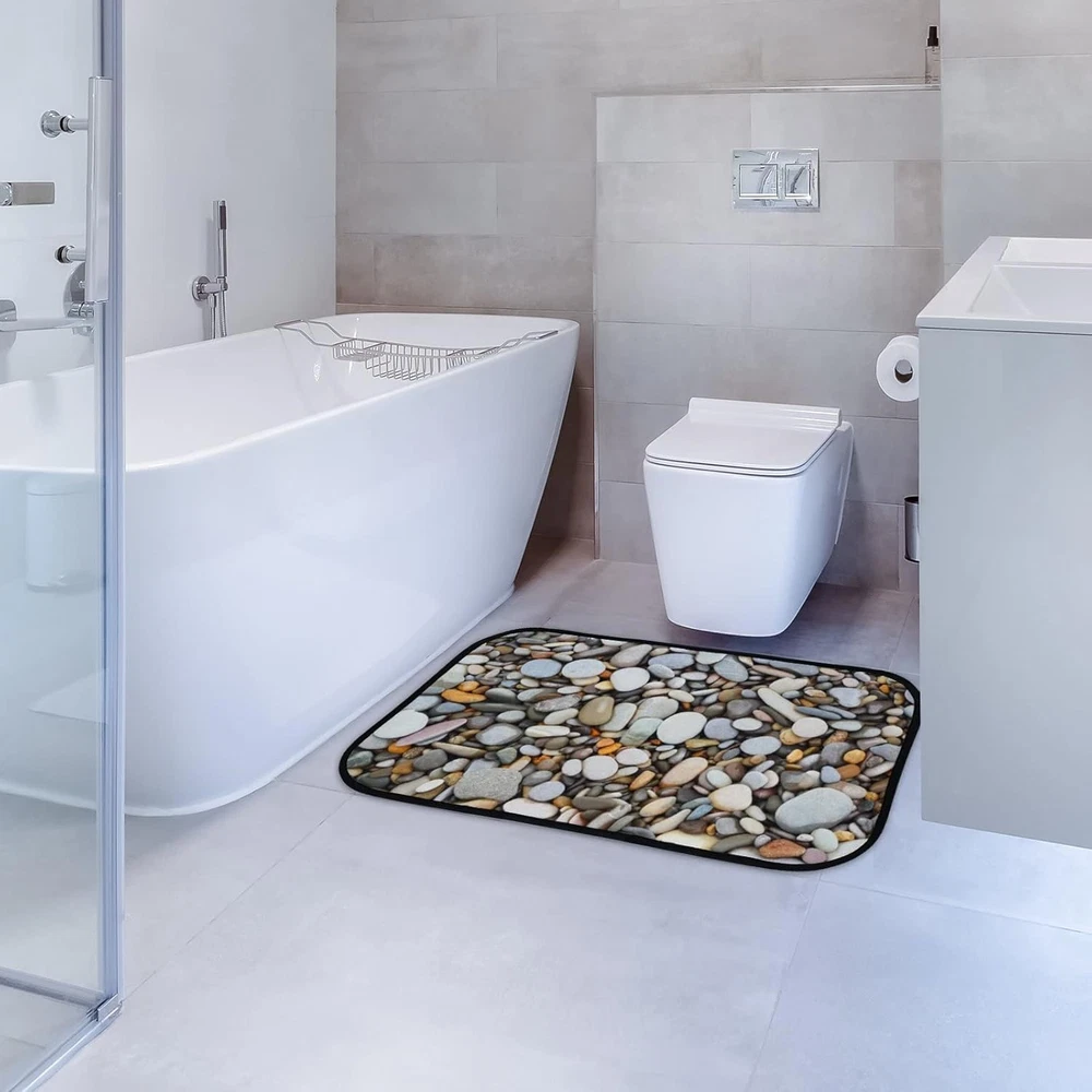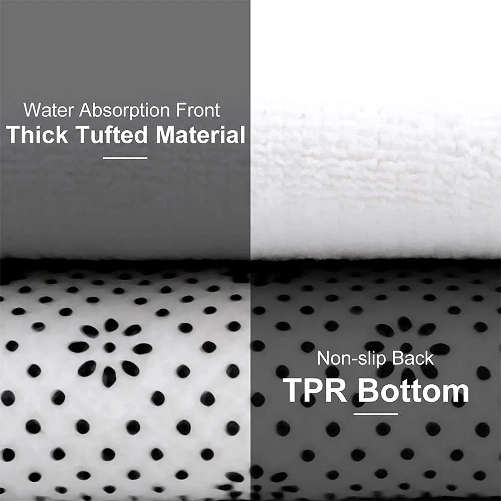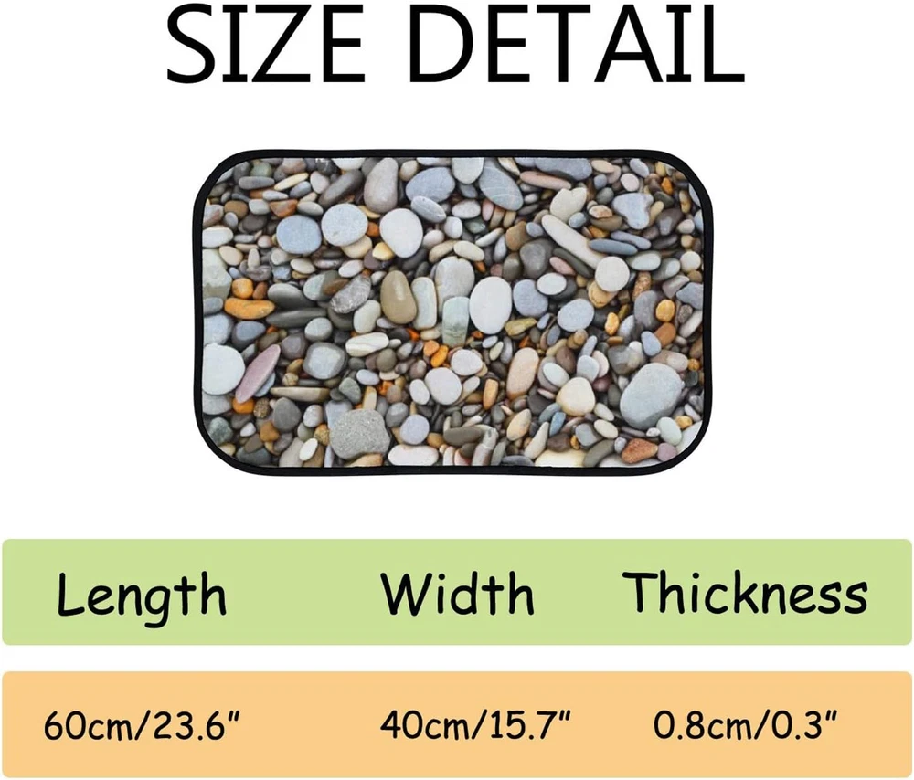 SIZE: 23.6 x 15.7 inch MATERIAL: Made of high density foam in the middle, polyester in the upper, and non slip dots on the bottom to prevent from skidding DURABLE: Soft touch material, do not fade and do not pilling EASY TO CLEAN: Use wet rag to wipe, machine washable PUT IT ANYWHERE: Recommended to put it in your bathroom, bedroom, front door, kitchen etc ★Package Includes★ - 1 x bath mat ★Durable★ - Made of polyester and foam, can be use for a very long time ★Care instructions★ - Hand wash or machine washable, and it also can be wipe with a wet rag ★Application Occasion★ - Bathroom, kitchen, front door, porch, kids room, bedroom ★Tips★ - There may be some creases because of long-distance transportation, please be assured that it will recover after 3-5 hours