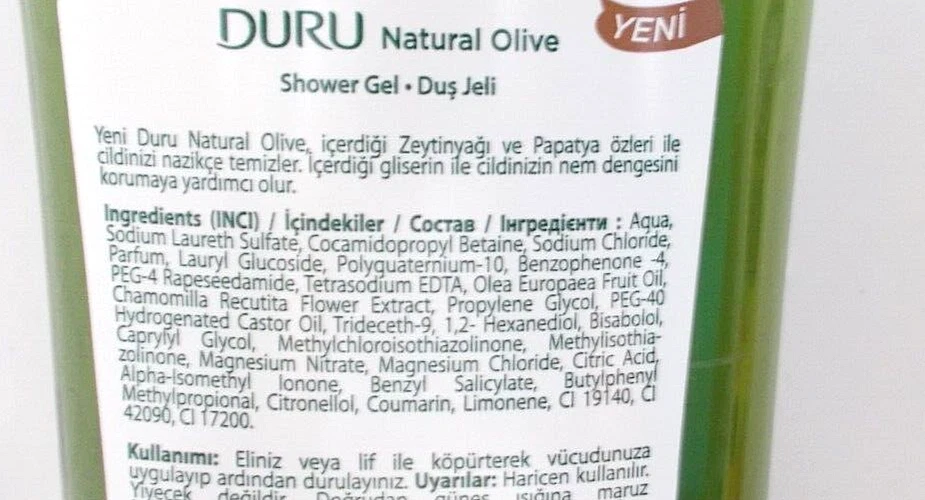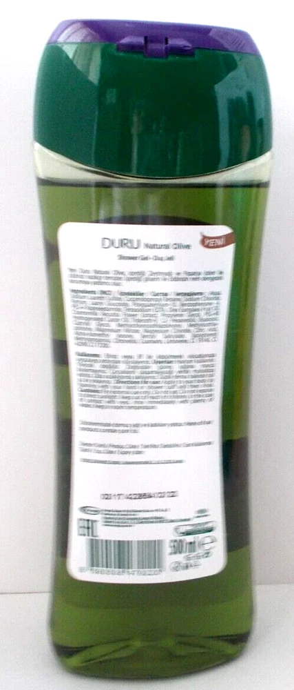 Size: Family Size Personalize: No Shape: Rectangular UPC: 8 690506 479220 Custom Bundle: No Pattern: Floral Brand: Duru Type: Shower Gel MPN: Does Not Apply Body Area: Body, Hands Department: Women gtin13: 8 690506 479220 Item Weight: 16.9 oz Skin Type: Normal Skin Product Line: Duru Color: Green Ingredients: Glycerin Country/Region of Manufacture: Turkey Scent: Olive Features: Ammonia-Free