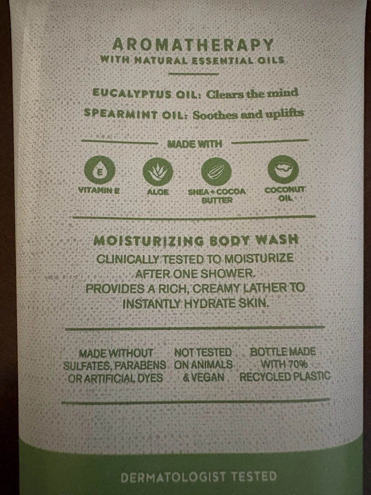 Bath and Body Works Aromatherapy Eucalyptus + Spearmint Moisturizing Body Wash with Shea + Cocoa Butter + Vitamin E, Aloe, Coconut Oil. 10 fl oz/ 296 ml.