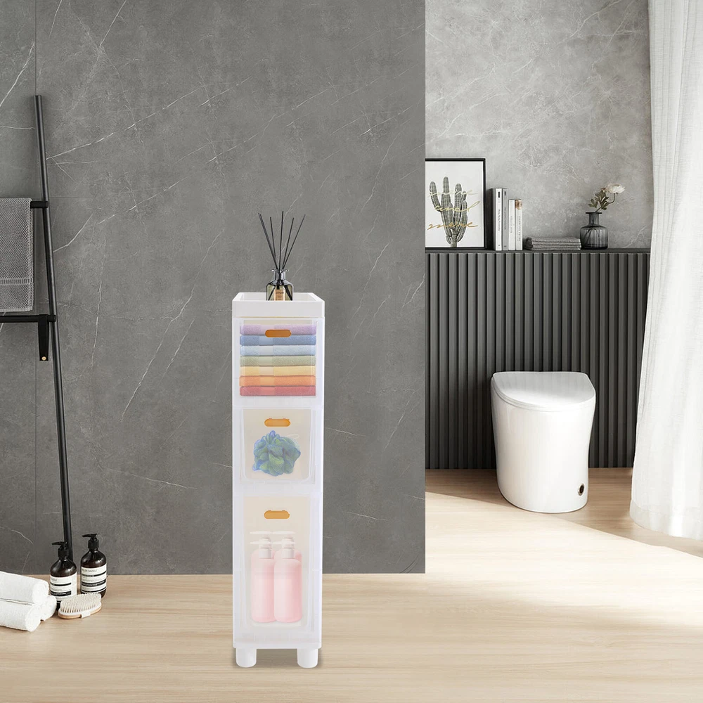 Bathroom Floor Storage Cabinet Narrow Slim Storage Cabinet Bathroom Organizer US T870A REWORK STATION Description In daily life, a neat and organized space can make us feel relaxed and happy. Let's take a look at this bathroom floor cabinet, which is made of premium PP material, sturdy and durable. Large capacity and 3-drawer storage space can meet your daily needs. The simple structure and smooth surface make it easy for you to install and clean. It is such a practical piece of home furnishing, bring it home soon! Key Features Sturdy and Durable: The premium PP material makes this product wear-resistant, waterproof, and less prone to deformation, ensuring long-term use in a wet environment. Storage Assistant: The product comes with 3 drawers of different sizes and a top compartment with raised edges for storing tissues, shampoo, cosmetics, towels, and other items, keeping your bathroom tidy and organized. The drawer design better protects items from getting wet and dusted. Thoughtful Design : The sturdy support feet with small pulleys raise the bottom to avoid moisture while allowing for higher stability and more convenient cleaning. Stylish Appearance: With an elegant white appearance and smooth lines, it shows a modern style and can decorate your bathroom well. Space-saving: Its small footprint (7.09*15.75 inches) and tall and slim design make full use of vertical space, making it fit into relatively narrow spaces in the bathroom. Easy to Clean: Thanks to the smooth surface and simple structure, you can wipe the dirt from it with a wet cloth(not included). Ideal Gift: This product is modern and practical and can be used as an ideal housewarming, birthday, and holiday gift for parents, friends, and loved ones. Buy with Confidence: We stand behind all our guests and look forward to assisting you with your purchase. It is our pleasure to answer your confusion and questions. The end of the story between us is not "we sell and you buy". Details Smooth Edge: The rounded and smooth edges not only add to the aesthetics of the product but also improve the safety of use. Clear Drawers: This design makes the placed items visible and allows you to find the items quickly. Practical Handles: They can be great for helping you open or close the drawers. Application The product can be used in bathrooms, kitchens, bedrooms, living rooms, laundry rooms, and other rooms for storing toiletries, cosmetics, towels, spices, skin care products, and more. Specifications Material: PP Style: Modern Color: White, Clear Assembly Required: Yes Mounting Type: Freestanding Indoor/Outdoor Usage: Indoor Number of Drawers: 3 Each Tier Load-bearing Capacity: About 2.5kg/5.51lbs Product Size: 18*40*80.5cm/7.09*15.75*31.69n Package Size: 41.5*37.5*35cm/16.34*14.76*13.78in Gross Weight: 4.15kg/9.15lbs Net Weight: 3.5kg/7.72lbs Package Included 1* Bathroom Storage Cabinet Other Accessories for Assembly Notes Please check the size carefully before ordering. Please use the product within its weight capacity to avoid damage. Please allow the slight color difference caused by the shooting light and 1-3cm error due to manual measurement, and make sure you do not mind before you order. Payment Delivery details Terms of sales About us Contact us Payment We accept ebay payment 。 Fees such as import duties, taxes are not included in the item price or shipping costs. These charges are the buyer's responsibility. Delivery details Shipping: 2-9 working days to: USA Terms of sales We maintain high standards of excellence and strive for hundred percent customer satisfaction. Feedback is very important to us. We hope that you contact us immediately before you give neutral or negative feedback, so that we can address your concerns. It is impossible to address issues if we do not know about them! About us Your satis faction is our ultimate goal. We work hard to earn your trust and future business. Our certified technicians have tested each item before shipping. The unit comes with 1 year limited warranty on all manufacturing defects. a) If you receive a defective item, you may return it or ask for a discount. Please contact us within 14 days after you receive the package. b) What you returned must be intact and in its original packaging as re? u. Customer is responsible for shipping costs of the returned item. c) We will cover the cost of shipping back t with the shipping rate indicated in the registration page. We will send you a new unit or refund the full payment you paid. Thank you. Contact us Business Hour Business Hour: Monday To Friday: 8:30 AM to 5:00 PM (Beijing China time) Due to time zones, our reply to your questions may not be immediately. But within above working time, we will reply your email within 24 hours. If it's non-workdays, please kindly be patient and wait till Monday. Please contact us with ebay message. Please feel free to contact us if you have any questions. Monday To Friday: 8:30 AM to 5:00 PM (Beijing China time) Due to time zones, our reply to your questions may not be immediately. But within above working time, we will reply your email within 24 hours. If it's non-workdays, please kindly be patient and wait till Monday. Please contact us with ebay message. Please feel free to contact us if you have any questions. Brand Unbranded Type Bathroom Storage Cabinet Item Height 80.5cm Item Length 18cm Item Width 40cm Material PP Color White, Clear Mounting Freestanding Number of Shelves 3 Assembly Required Yes