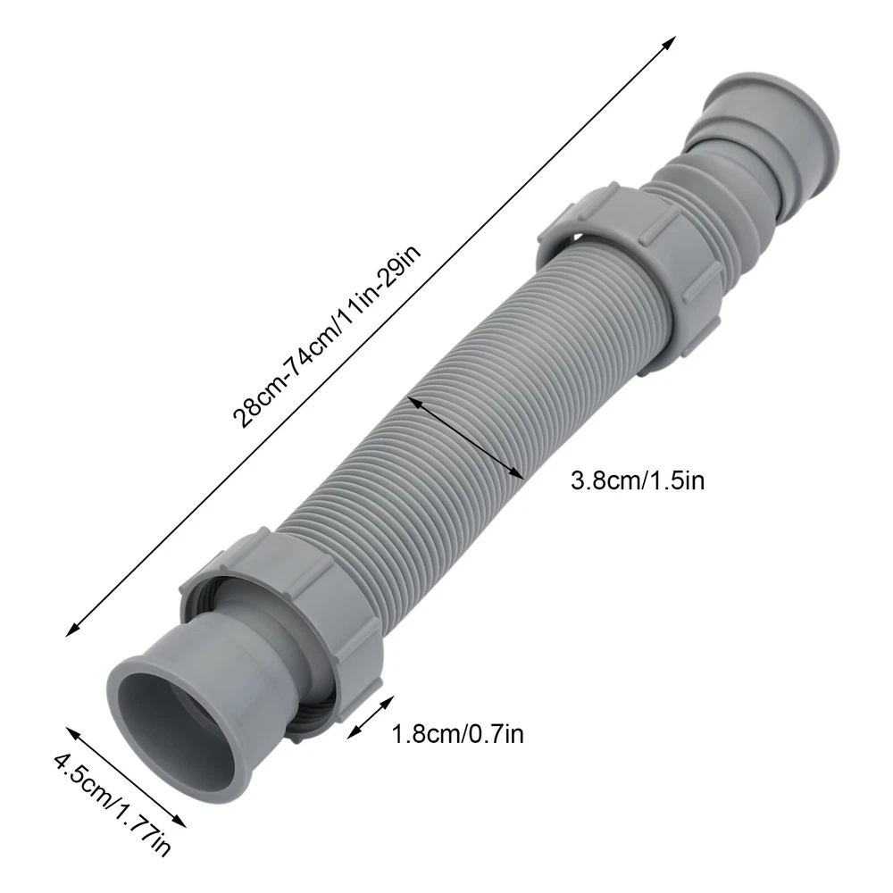 Feature 1: Durable Material,Good quality Model: KBETZJT200-1 Tube Orifice Width: 18mm/0.7in Process: Blow Molding Brand: Unbranded Material: PP, Rubber MPN: N/A Tips: If you have any questions, please contact us! Extendable Length: 28-74cm/11-29in Inner Diameter of Pipe Orifice: 45mm/1.77in Gross Weight: 0.2kg/0.44 lbs UPC: Does not apply Package Size: 35*8*8cm/13.77*3.14*3.14in Pipe Inner Diameter: 38mm/1-1/2in 1.Feature: High-quality Connector Type: Trap gtin13: Does not apply Color: Grey