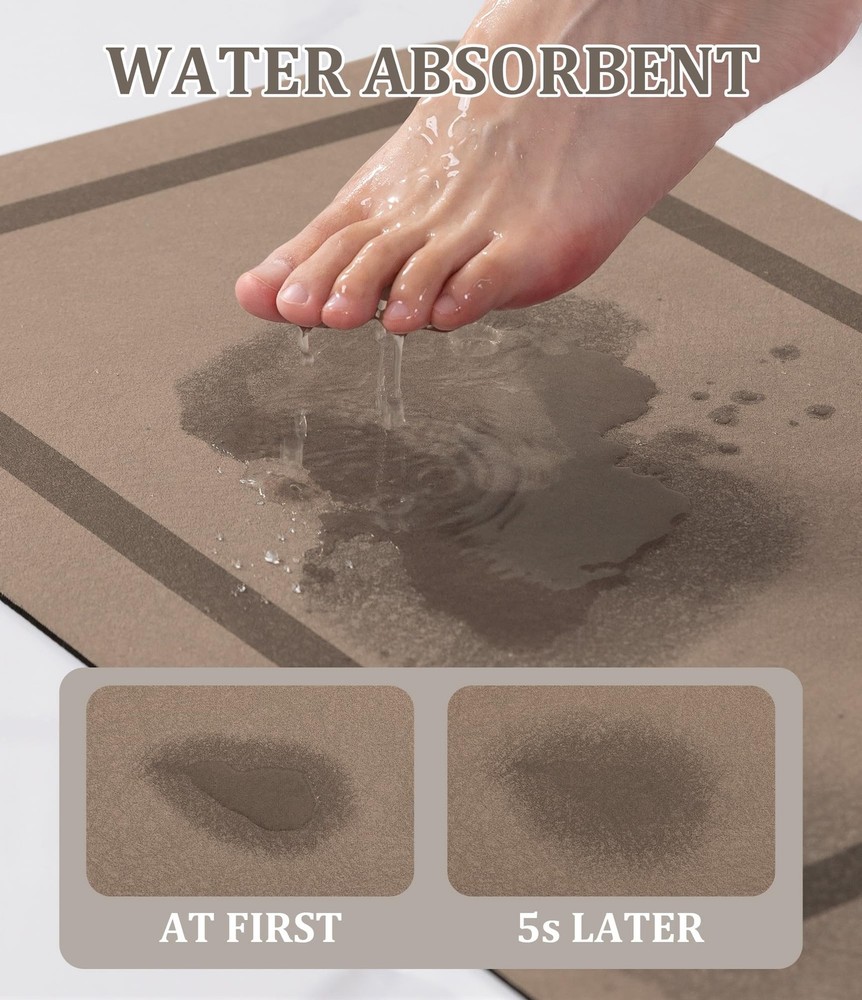bathroom rugs are the perfect companion to compliment your bathroom style. FEATURES: hairless suede fabric surface, very soft and comfortable for your feet to step on. Present in 16" x 24" / 17" x 30" / 17" x 47" /17" x 59" /24" x 36"/ 24" x 48" / 24" x 59" with a unique geometric design - Quick drying - Rubber backing - Ultra absorbent Is this bath mat durable and long-lasting? Our bath rug is constructed with the most premium, high-quality Rubber backing. This durable and strong material will help to keep your bath rug securely on your floor, so that you no longer need to worry about shifting or bunching. My old rug was rough and scratchy on my feet how is yours different? Our bath rug features a soft, hairless suede fabric surface that is a pleasure to step on after a bath or shower. The density of our pile is much higher than most other mats on the market. Will the rug complement my bathroom decor? Certainly! Our bath rug comes in an assortment of stylish, sophisticated colors that will be the perfect complement to any bathroom design or existing towels. You can also use this rug in multiple areas of your home such as your bedroom, laundry room, playroom, children’s room, or pet space. 【Absorbing & Quick Drying】bathroom mat quick dry made of absorbent fabric that designed to dry quickly, absorbent bath mat can suck up dripping water quickly when you come out from bathtub or shower, watermarks will disappear in a few minutes after leaving 【Non-Slip】High quality non-slip rubber back, grip on floor tightly and flatly without skidding or curling up, magic mat bathroom make sure the slipping accident won't happen 【Durable】No microfibers, bathroom mat never be bothered by fiber dropping or fuzzy pilling problems, water absorption and quick drying make sure bath rugs won't be smelly after long term use 【Easy to Clean】Non slip bath mat Use hairless suede fabric surface, quickly absorb water, dirt and hair will not stay on the surface, you can just wash bathroom rugs with shower nozzle or wet cloth then air dry, Do not use machine wash 【Wide Use】Low profile design make it a perfect thin bathroom rugs fit under door allows any wheel can easily pass on, the bathroom runner rug perfectly made for bathroom shower, kitchen mat, bathroom runner rug, sink mat