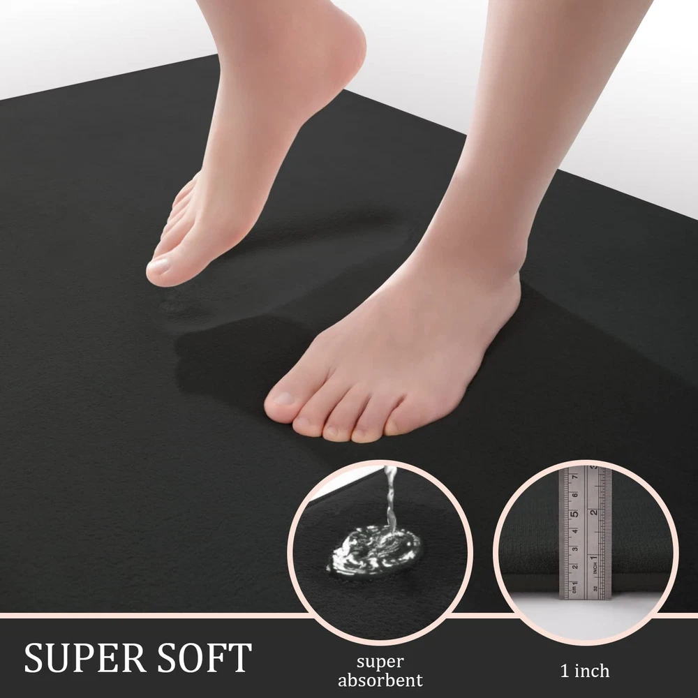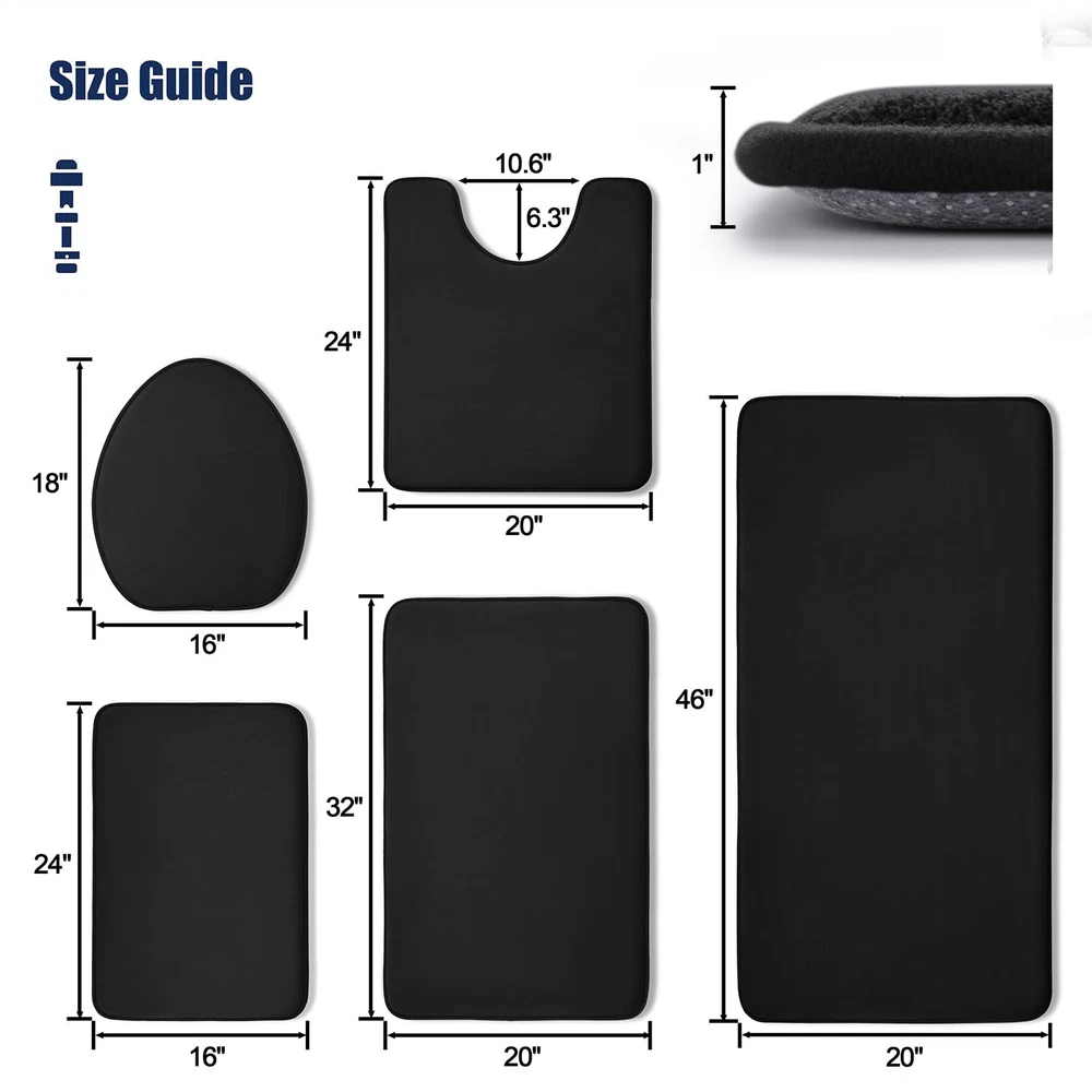 【Bathroom Rugs Sets】Bathroom rug set 5 pieces included large bath rug 20’x46’, 32' x 20' and 24' x 16' long Mat, 18' x 16' small mat, 24' x 20' U-Shaped counter rug. Thicker and better constructed than most other rugs. Suitable for hotel, sauna, shower, gym for bathroom, bedroom, dining room, living room, and so on. 【SUPER WATER ABSORPTION】Intensive small holes on thicker memory foam help return the rugs, also drive the airflow through the surface, absorb water quickly, and diffuse faster. keeping your bathroom away from water, and keep clean every day. 【ANTI-SLIP and DURABLE】The bath mat non-slip bottom is made of high-quality non-woven dot-molded process . This anti-skid backing has practically slip resistance on the tile floor surface, that it won’t slip or slide to keep you more safe. The bottom of this bathroom mat is more sturdy and durable, not easily worn and peeled off, and can be used for a long time. 【SUPER SOFT AND COMFORT】Extra-thick luxury plush carpet absorbs moisture like a giant sponge, keeping floors dry, more compact, and thicker,When you step on the carpet, this super soft bath rug feels super comfortable and safe when your feet steps on it. 【MACHINE WASHABLE】 Save Your Time - Machine wash in cold water on gentle cycle, fast drying, the memory foam bath mat dries exceptionally fast. Don't worry about it getting the fibers off, high quality non-fading, easy to handle and care for. Very durable material, no matter how many times it is washed and dried, the color will stay nice and vibrant.