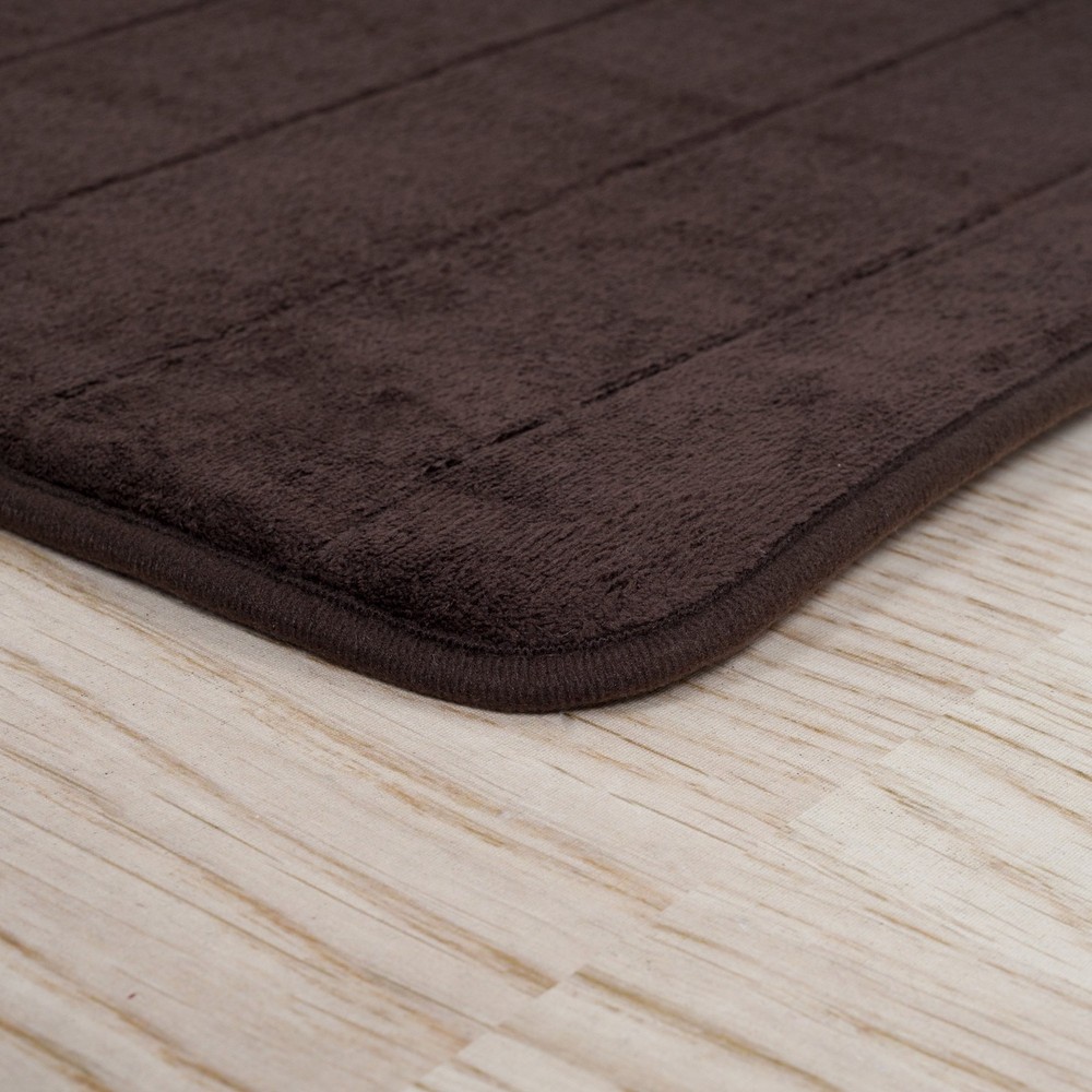 SET OF 2 BATH RUGS – This shower mat set includes one oversized 32-inch by 20-inch-long bath runner, perfect for tubs or double vanities, and one standard size 23-inch by 17-inch-long bathmat you can place in front of your toilet or pedestal sink. MEMORY FOAM – The 1/2-inch-thick layer of memory foam provides plenty of soft, cushioned comfort as you step out of your tub or shower. Each machine washable rug is easy to clean, to help keep your bathroom feeling tidy. ATTRACTIVE ACCENT RUGS – These bath rugs for bathroom feature a luxurious textured stripe pattern and versatile neutral color palette. They are sure to add a stylish accent to your laundry room, kitchen, bedroom, or bathroom décor. NONSKID AND ABSORBENT – The rubberized nonskid backing of each bath rug helps keep it in place while you dry off from your shower or bath. The woven microfiber top wicks away moisture to keep your floor safe and dry and is fast drying. PRODUCT DETAILS – Materials: Memory Foam, Microfiber, and Polyurethane Backing. Dimensions: Large – (L) 32” x (W) 20” x (H) 0.5”; Standard – (L) 23” x (W) 17” X (H) 0.5”. Bath Mat Set of 2. Machine Washable. Color: Chocolate Brown.