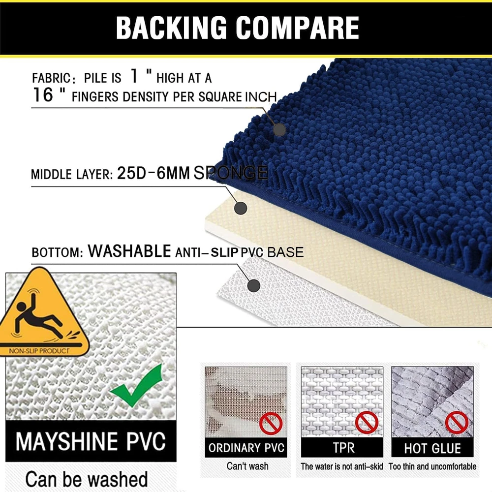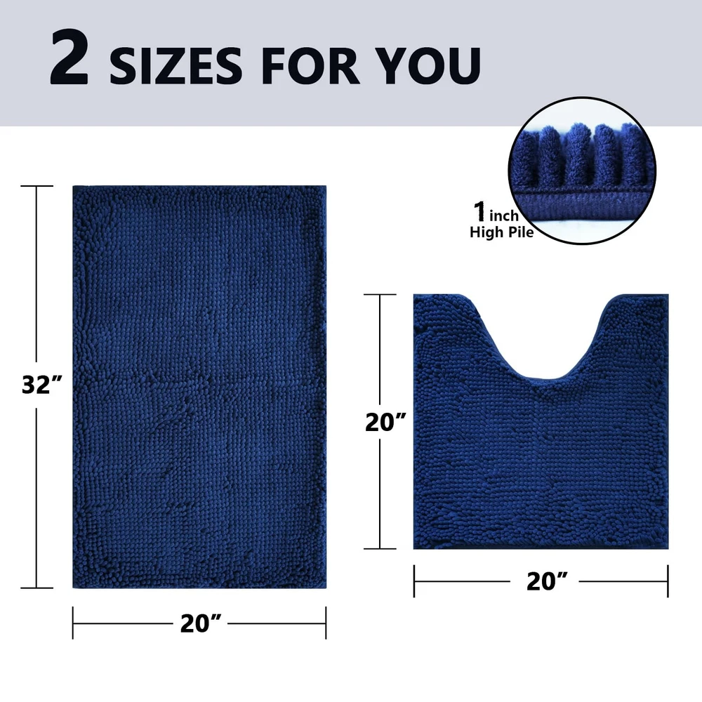 bathroom rugs BATHROOM RUG SET——There are 2 bath mats in this set. The 2 bath mats for bathroom non slip are in 2 different sizes. They are 32x20 inch and 20x20 inch U shape. The 32x20 inch bath mats for bathroom could be placed next to the tub or shower door, and the 20x20 inch U shape bath mats for bathroom could be placed in front of the toilet. VERY SOFT——The bathroom rug set is made of very dense chenille. It is thick and soft and could give you a very comfortable touch, just like stepping on cloud. This comfortable feeling could bring more beauty and happiness to your life. VERY ABSORBENT——These bath rug can soak up the water quickly. Fluff will instantly absorb moisture from your feet to avoid wetting your floor. It keeps your feet dry and comfortable. NON SLIP——This bathroom rugs sets 2 piece with PVC bottom keeps your mat from sliding. It will protect you from slipping when you step on the bath rugs for bathroom. The PVC bottom of this bathroom mats is very non-slip and very durable. MACHINE WASHABLE——Use gentle mode and normal temperature water for cleaning, hang to dry or tumble dry at low temperatures. Shake to restore fluff. No worry about it getting the fibers off, it's really easy to handle and care. BATHROOM RUGS——bath mat, bathroom rug, bathroom mat, bath rugs, bath mats, bath mats for bathroom non slip, bath mats for bathroom, bathroom rug set, bath rug, bathroom rugs sets 2 piece, bath rugs for bathroom, bathroom mats, bath mat set, bathroom mat set VIBRANT DECOR——As a professional manufacturer of bath mat set, we know what kinds of bathroom mat set are needed by consumers. We have prepared many different colors for you, so as to set off your home decoration style,bring charming and fantastic feeling to your family. ❤❤❤ GENTLE TIPS——You'd better keep your bathroom floor clean and dry before putting in the quick dry bath mat to avoid slipping due to wet floors. When machine washing it, you’d better use gentle mode. Wish you a nice day. Wish you a good luck. Wish you a happy life. FOR BABY——If you have a baby in the house, hard floors can easily knock your baby's knees. bathroom rugs is very soft. Laying our bathroom rug on the floor will protect your baby from harm. FOR PET——If you have a pet in your home, it needs a very comfortable place to sleep and rest. Your pet can enjoy a warm and soft afternoon on our bath mat. Pet eating may stain the floor, you can let your pet eat on our bathroom mat, this will avoid pet food staining your floor.