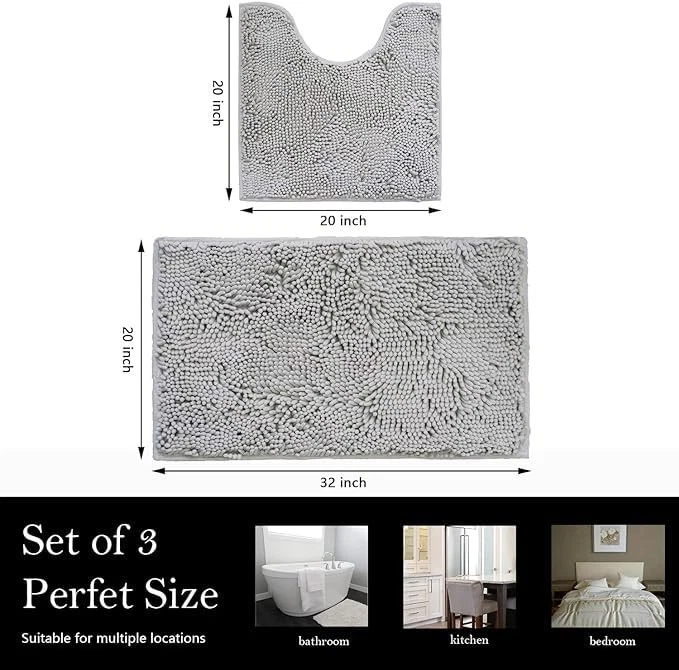 NON SLIP--- With updated version slip-resistant PVC spray backing,year after year keep strongly hold mats firmly in place for safety ,that it won't slip or slide,keeps the rugs mats long lasting and more durable. Perfect two piece bathroom carpet set - two different sizes including 20 "x 32" and U-shaped (20 "x 20"). Chenille material perfectly protects your feet Strong Non-slip--The bottom uses the latest version of non-slip PVC liner, which holds almost firmly to the surface of the tile floor, ensuring the safety of you and your family. Make sure the floor is dry before you put in your bathroom carpet. Ultra Soft and Thick--bathroom mat is made of plush chenille, the material fiber is fluffy and soft, more dense and thick, giving the foot the ultimate comfortable massage feeling. Super Absorbent--Bathroom mats are made of super absorbent microfiber piles. When you step out of the tub, shower or get ready in the sink, thick chenille piles quickly absorb moisture from your feet and keep the floor clean. Super Durable--Bathroom mats don't shed easily when pulled, firmly lock in the pile and weave tightly, making the pile stronger and easier to handle. A Variety of Colors--We have prepared a variety of color schemes to make it easy for you to pick your favorites and perfectly match your home decor style and space layout. Versatile Use--You can place these bathroom mats anywhere you want to keep them dry or clean, such as beside the tub, in front of the sink, in the bathroom, bathroom, kitchen, entryway. Even living rooms, bedrooms, hotels, etc A Warm Gift--A combination of soft plush surfaces and a super-fiber bathroom mat that combines super-absorbent and fast drying properties. It's the perfect gift for your family Pet Essentials--Give the pet a warm gift, let it become the best memorial between you, give it the most warm company and care in winter. Bathroom--bathroom rugs bath mat rug washable rug bathroom rug bathroom mat bathroom rug set pink rug bathroom rugs sets 2 piece bath rug bathroom sets with shower curtain and rugs