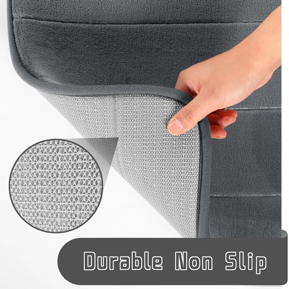 Luxury 2-Pieces Bath Rugs Sets: Our luxury memory foam rugs set includes 1 large bath mat 31.5" x 19.8" and 1 small bath rug 17" x 24". Bath mats can be used at tub-side, front of the sink, or at any place in your home where you want support and warmth on your toes! Super Water Absorption: The soft velvet microfiber layer can absorb as much water as possible from your wet feet. And the water do not stay on the surface on the bath mat A Breeze!-Machine Wash & Dry: bathroom rug is easy to clean. Machine wash with cold water and mild detergent (no chlorine or bleach) tumble dry at low speed or hang dry. Color will not fade and will stay vibrant for many years no matter how many times you wash and dry Non Slip Backing: bathroom mat rug is constructed with strong and sturdy Pvc backing which helps to prevent shifting and skidding. And it will hold up for years to come, unlike many other brands, whose rubber backing tends to wear and peel off after multiple washes. Prevent from slipping, please make sure the surface under the mat is smooth, clean and dry How Is the Feeling of Walking on the Clouds? It's Memory Foam Bathroom! - Thicker and better constructed memory foam bathroom mat, provides comfortable experience for your feet, just like walking on the soft clouds. We have a variety of colors for you to select. Please choose one of your favorite colors to match the home decoration perfectly. Take the clouds home now