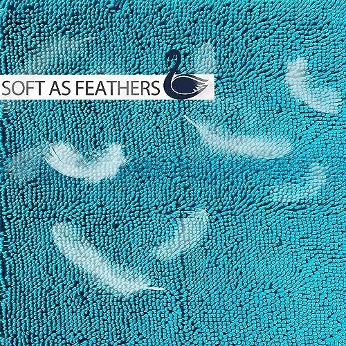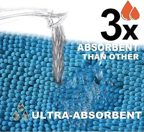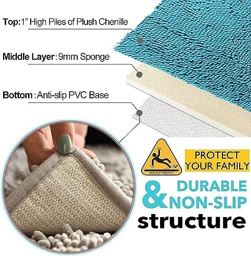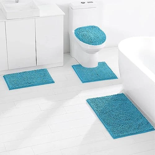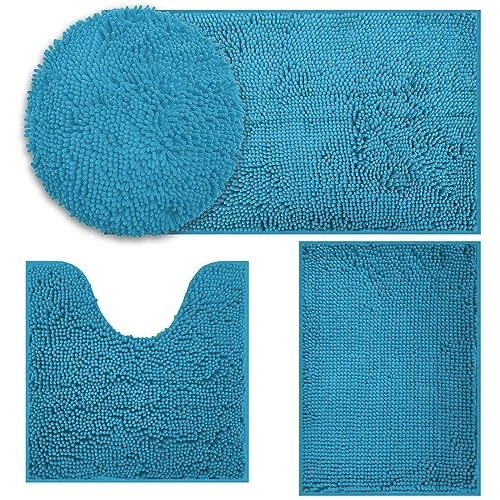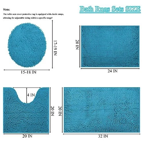 Bathroom Rugs Sets Chenille Bath Rug Non-Slip Bath Mats with 4 Piece Teal Blue