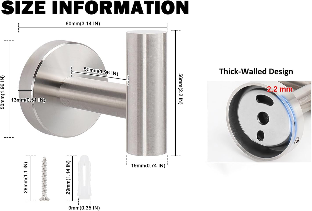 Bathroom Towel Hooks, 304 Stainless Steel Robe Shower Hooks Wall Mounted, Heavy Duty Towel Hangers for Bathroom Kitchen Bedroom (6 Pack, Brushed Nickel) Upgrade your daily routine with Bathroom Towel Hooks, 304 Stainless Steel Robe Shower Hooks Wall Mounted, Heavy Duty Towel Hangers for Bathroom Kitchen Bedroom (6 Pack, Brushed Nickel) — premium build for reliable performance and long-lasting value. Enjoy fast handling, friendly support, and a risk-free purchase backed by easy returns. Trusted seller with excellent feedback Popular item — often sells out quickly 30-day returns, no questions asked Key Benefits Feel the quality: durable materials and clean finish Save time: quick setup and easy everyday use Peace of mind: hassle-free support via eBay Messages Smart value: excellent price–performance for home, office, hobby, or professional use Item Specifics Item model number LB+6YDKYG(Stain01).Nkl Part Number LB+6YDKYG(Stain01).Nkl Style Stylish Finish Brushed Mounting Type Wall Mount Color Brushed Nickel Special Feature Towel Hook Item dimensions L x W x H 1.9 x 1.9 x 2.2 inches Included Components Accessories Item Weight 1.2 pounds Number of Hooks 6 Batteries Required? No Surface Recommendation Drywall, Wood, Tile, Metal Special Features Towel Hook Finish Type Brushed Product Dimensions 1.9 x 1.9 x 2.2 inches Size 6 Pack Description STURDY: Made of premium 304 stainless steel with incredible lifespan; Besides, the quality plating process makes them rust and be corroded despite even in humid environments COMPACT AND SPACE SAVING: These lightweight and compact hooks are thoughtfully designed to keep your home organized; Great for maximizing storage in small areas, allowing you to come home effortlessly and enjoy a happier, more relaxed life STYLISH 6 PACK: Featuring a modern style and classic color, these hooks blend seamlessly with any interior decor; The thickened vertical design provides reliable support for your items, protect items against accidental slips or falls WIDELY APPLICATION: Suitable for bathroom, bedroom, kitchen, etc; Great for hanging towels, bags, keys, clothes, kitchenware, etc; This wall hook will be great for organizing your belongings SEAMLESS INSTALLATION: Easily install these hooks with concealed screws that maintain a clean, polished look; The smooth surface is not only visually appealing but also easy to clean, ensuring ease of maintenance Product description 304 Stainless Steel Not easily rusted and corroded,built to last. You can use this hook to organize your home. Easy Installation Easily install these hooks with hidden screws in less than 1 minute. Compact and Space Saving Great for maximizing storage in small areas Stylish Dsign Modern style and classic color, these hooks blend seamlessly with any interior decor. Towel Hooks In Different Views Widely Usages in Your Home! Other Products Customer Reviews 4.5 out of 5 stars 99 4.5 out of 5 stars 355 4.5 out of 5 stars 862 4.4 out of 5 stars 1,011 4.7 out of 5 stars 506 4.7 out of 5 stars 1,029 4.7 out of 5 stars 1,161 Material 304 Stainless Steel 304 Stainless Steel Iron, Marble Iron Iron, Marble Iron, Marble Iron, Marble Color Brushed Nickel Brushed Nickel Black Black Black Black Black Assemble Required ✔ ✘ ✔ ✔ ✔ ✔ ✔ Mount Type Wall Mounted Self Adhesive Standing Standing Standing Standing Standing Usage Scenarios Kitchen, Livingroom Kitchen, Livingroom Dinning Table Kitchen, Livingroom Kitchen, Livingroom Kitchen, Livingroom Kitchen, Livingroom 1.9 inches x 1.9 inches x 2.2 inches. Weight: 1.2 lb Package Includes 1× Bathroom Towel Hooks, 304 Stainless Steel Robe Shower Hooks Wall Mounted, Heavy Duty Towel Hangers for Bathroom Kitchen Bedroom (6 Pack, Brushed Nickel) User manual (if included) Invoice by email (VAT shown on request) Shipping & Returns Fast handling and dispatch from our warehouse Tracking provided for parcel shipments 30-day returns according to eBay listing settings Why Buy From Us? Top-rated customer experience Secure checkout through eBay Reliable packaging — arrives ready to use Limited availability on popular variants Don’t wait — click Buy It Now to secure your Bathroom Towel Hooks, 304 Stainless Steel Robe Shower Hooks Wall Mounted, Heavy Duty Towel Hangers for Bathroom Kitchen Bedroom (6 Pack, Brushed Nickel) today.