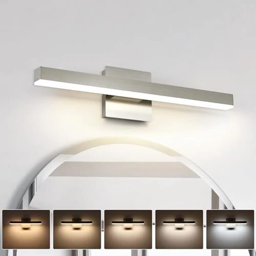 Return Policy Fast Delivery Trusted seller Bathroom Vanity Light Brushed Nickel Bathroom Light Fixtures Over Mirror 23.62 inch 5CCT Dimmable Modern Bathroom Lights Bar LED Vanity Lighting ETL Certificated Product Description 5 Color Changeable: Our brushed nickel vanity light for mirror is with 5 colors temperature according to your actual need, t is a SHIFT key on the side of the vanity lights base, and freely choose soft white/warm white/cool white/Day light temperature to meet your mood Dimmable Function: Vanity lighting fixtures with ETL certificated dimmable driver ensure the bathroom lamp to 5%-100% dimming range, the vanity light bar compatible with most household triac LED dimmers for smooth and flicker-free operation.you can switch the mirror lights freely to the dimming range Energy Saving And Easy Installation: integrated Led light source 18W modern bathroom light, voltage: 110V / 120V. LED technology saves up to 80% electricity compare to conventional light bulbs and lifespan up to 30,000 hours. Easy to instal the bathroom lighting fixtures over mirror just connect to the reserved wire directly Durable Vanity Light: Bathroom vanity light is made of metal material and white acrylic cover, with anti-corrosion, anti-rust, waterproof and dustproof ability Wide Application: Perfect for you indoor bathroom fixtures as vanity lights for mirror, dressing table mirror lights for makeup, led lights for bathroom cabinet, restroom lights for vanity mirror , powder room wall light fixture etc Shipping Returns Payment Shipping Shipping is FREE to all addresses other than APO/PO boxes in the lower 48 states. All our stock ships from US-based warehouses. Shipped via USPS or UPS (depending on location and package weight) Unless stated otherwise, all orders will ship within 24-72 hours of your payment being processed. Check our feedback to see the great reviews of FAST shipping we offer. Returns Seller does not accept returns Payment We currently accept payment via eBay managed payments only. Once payment is cleared, we will dispatch your shipment within 1-3 business days. Please refer to the "Shipping" tab for more information regarding shipping speed to your destination.