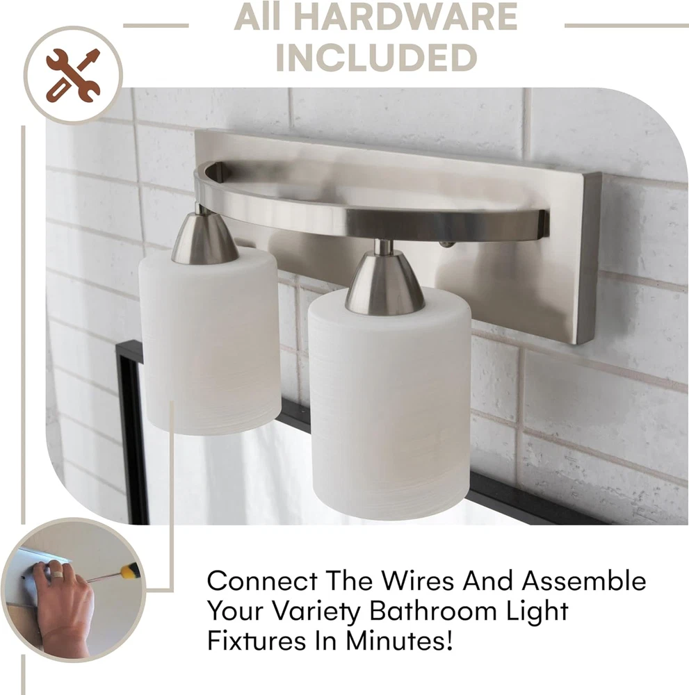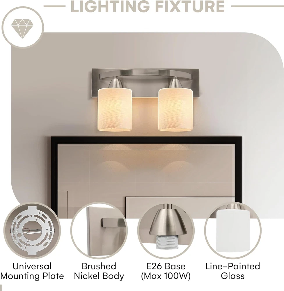 Store New Arrivals Add to Favorite View Feedback Contact Bathroom Vanity Light Fxiture - Interior Bathroom Lighting Bar with Modern Milk Glass Shade - Bathroom Lights over Mirror - Brushed Nickel, 2 Lights, E26 100W LED, Bulbs Not Included Description Light Source Type Halogen, LED, Fluorescent, Incandescent Item model number 1 Style Modern Number of Items 1 Power Source Corded Electric Number of Light Sources 2 Control Method App Switch Type Push Button Theme Modern Lighting Method LED Controller Type Push Button Unit Count 1 Count Room Type Bedroom, Living Room, Dining Room, Kitchen, Bathroom, Home Office, Vanity, Dressing Room Assembly Required Yes Installation Type Insert Material Glass Manufacturer Part Number 1 Efficiency High Model Name Bathroom Vanity Light Fixture Finish Type Brushed Specific Uses For Product Home Included Components 10 pool cover anchors and 10 head screw bolts Indoor/Outdoor Usage Indoor Brightness 1600 lumen Country of Origin China Light Color White Water Resistance Level Not Water Resistant Item Weight 3.9 pounds Light fixture form Vanity Special Features Dimmable Special Feature Dimmable Bulb Base E26 Shade Color Clear Mounting Type Wall Mount Color Brushed Nickel Wattage 100 watts Shape rectangular prism Voltage 120 Volts Recommended Uses For Product Bathroom Lighting Shade Material Glass Fixture Type Non Removable Product Dimensions 6.69"L x 17.72"W x 8.27"H Size 2 Lights Sleek Modern Aesthetic: Designed for style and functionality, these bathroom lighting fixtures over mirror provide soft, flattering light for any bathroom space, enhancing decor. Size: Measuring 16" W x 8.5" H x 5.3" D, this fixture requires two 100W Type A bulbs for versatile lighting; bulbs are not included with this bathroom vanity light. Quick Installation: Includes necessary hardware for easy setup, allowing you to install your new vanity lighting fixtures in minutes without effort or special tools required Reversible Mounting Options: Install this versatile bathroom light fixture facing up or down to match your preferred look, bringing ambient lighting into any space Ideal for Stylish Bathrooms: Bring timeless charm and light to your space with these durable vanity lights for bathroom, featuring high-quality construction in a classic finish Product Description This Bathroom Vanity Lighting Can be Hung with the Light Facing Up or Down. It Can be the Ideal Decoration for Your Home and Other Locations. Weighted Base E26 Base (Max 100W) Line-Painted Glass Start Your Day Right with a Beautiful Illumination, Making Your Morning Routine a Breeze. ABOUT US We offer the best prices around on high quality products. Our E-store includes media such as books, movies, music and games while offering electronics, toys, sporting apparel, clothing, tools, general home, garden items and more. SHIPPING We are always working hard to ensure your package arrives as soon as possible. Please understand that some factors like weather, high postal traffic, and the performance of shipping companies are outside of our control. We offer free shipping to the lower 48 states and ship within 2 business days of payment, usually sooner. We do not accept P.O. Boxes. Please provide a physical address. For shipping outside of the continental USA, we only use eBay's Global Shipping Program.The item is shipped to KY and then sent to the rest of the world. International customers are responsible for all duties and taxes. Continue to check out in order to calculate costs for shipping the item to your country. Messages regarding eBay's Global Shipping Program MUST be directed at eBay EXCLUSIVELY. RETURNS We offer a 30-Day Return Policy on items which you are not completely satisfied with. You have the option for a full-refund or an exchange of the item. No returns are available on items shipped outside of the USA. PAYMENT We accept PayPal. CONTACT US This page content is yet to come Please ad us to your favorite seller and visit again later Thank You CUSTOMER SATISFACTION We try our very best to make sure every customer is completely satisfied. If there's a problem, message us! We're happy to help. WE ACCEPT Copyright © 2021 AutoDS. | All Rights Reserved