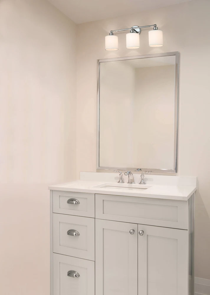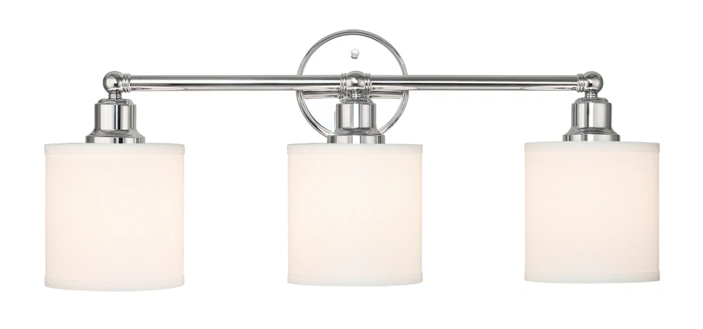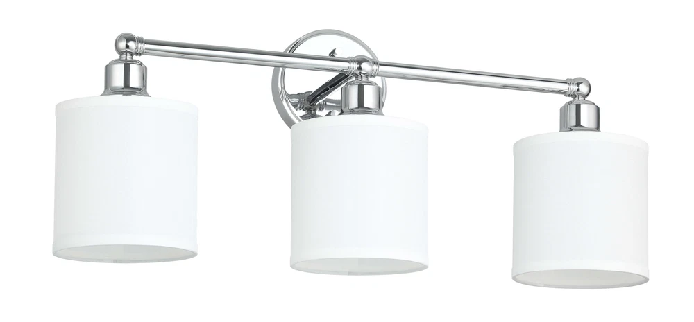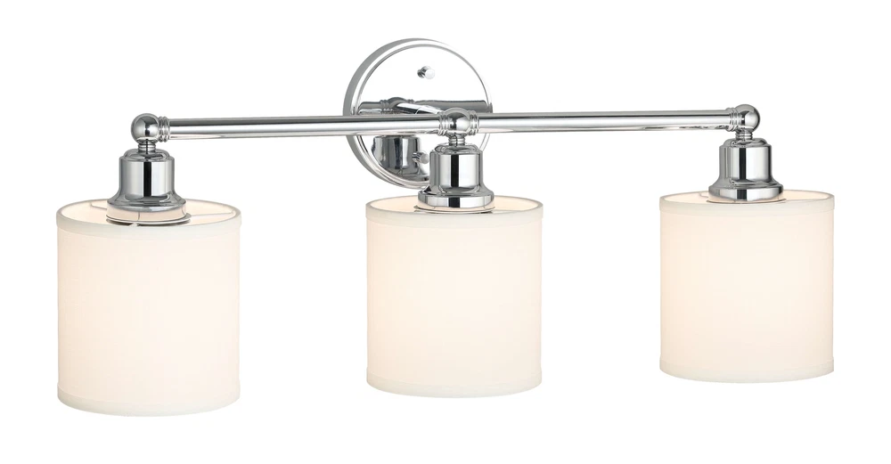 Bathroom Vanity Light with Fabric Shade 3 Light Wall Fixture Chrome Finish