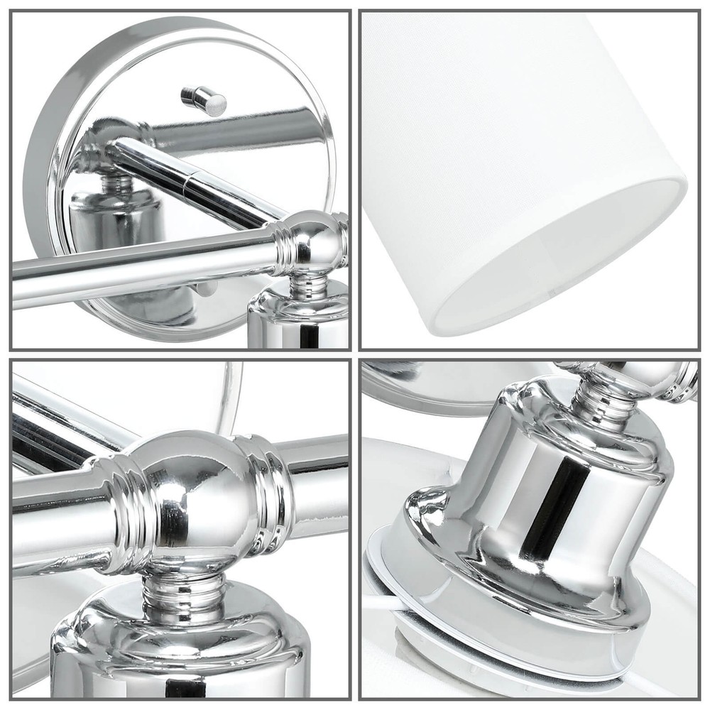 Style: Modern Personalized: No Model: XB-W1214-3-CH Shade Shape: Drum Brand: XiNBEi Lighting Type: Vanity Lighting Installation Area: Indoor Material: Metal, Fabric Shade Color: Chrome gtin13: 749235406224 Bulb Shape Code: E26 Manufacturer: Xinbei Lighting Era: 21st Century (2000-now) Room: Bathroom, Bedroom, Living Room, Home Office/Study, Workshop UPC: 749235406224 Light Direction: Downwards, Upwards Labels & Certifications: ETL Lighting Technology: E26 Finish: Chrome Control Style: Wall Switch Department: Adults Package: 1 pack Features: Wall Mounted, Hardwired Voltage: 120 V Manufacturer Warranty: 1 Year