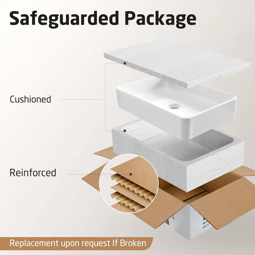 Store New Arrivals Add to Favorite View Feedback Contact Bathroom Vessel Sink 20 Inch above Counter Rectangular White Ceramic Countertop Sink for Cabinet Lavatory Vanity, BVS123S50 Description Base Width 13.4 Inches Style 19.9" X 13.4" Rectangle Color White Item Dimensions D x W x H 19.88"D x 13.4"W x 4.1"H Material Ceramic Material Type Ceramic Model Number BVS123S50-20190702 Item Weight 23.19 Pounds Drain Type Pop-Up Shape Rectangular Product Care Instructions Wipe with Damp Cloth Finish Types Painted Installation Method Countertop Product Dimensions 19.88"D x 13.4"W x 4.1"H Style Name 19.9" X 13.4" Rectangle Size 19.88"(L) X 13.4"(W) X 4.1"(H) Rectangular Vessel Sink: 19.88"(L) X 13.4"(W) X 4.1"(H). Standard 1.75" drain opening Superior Ceramic: The sink is made of premium quality ceramic, lasting beauty and exceptional durability Premium Glaze: This sleek vessel sink has a smooth, non-porous surface with a baked-on glaze for added durability and a high-gloss finish. Simply wipe the sink surface with a damp cloth to keep it looking beautiful with minimal maintenance Installation Requires: Top mount installation, no faucet hole, no overflow. Designed to work with wall-mount or counter-mount faucet Attention: Check the sink prior to installation to make sure it has not been cracked or chipped during shipping. Sink packed with extra-thick foam on all sides in the strong corrugated cardboard box to against shock and vibration Product Description The video showcases the product in use. The video guides you through product setup. The video compares multiple products. The video shows the product being unpacked. More Choices for You Add to Cart Add to Cart Add to Cart Add to Cart Customer Reviews 4.7 out of 5 stars 1,403 4.7 out of 5 stars 1,403 4.7 out of 5 stars 858 4.6 out of 5 stars 379 4.7 out of 5 stars 1,403 5.0 out of 5 stars 6 Price $95.00 $ 95 . 00 $68.00 $ 68 . 00 $69.90 $ 69 . 90 — $91.99 $ 91 . 99 — Shape Rectangle Rectangle Oval Round Rectangle Rectangle Color White White White White White White Material Ceramic Ceramic Ceramic Ceramic Ceramic Ceramic Installation Type Countertop Countertop Countertop Countertop Countertop Countertop Easy to Clean ✔ ✔ ✔ ✔ ✔ ✔ Hard-wearing Surface ✔ ✔ ✔ ✔ ✔ ✔ ABOUT US We offer the best prices around on high quality products. Our E-store includes media such as books, movies, music and games while offering electronics, toys, sporting apparel, clothing, tools, general home, garden items and more. SHIPPING We are always working hard to ensure your package arrives as soon as possible. Please understand that some factors like weather, high postal traffic, and the performance of shipping companies are outside of our control. We offer free shipping to the lower 48 states and ship within 2 business days of payment, usually sooner. We do not accept P.O. Boxes. Please provide a physical address. For shipping outside of the continental USA, we only use eBay's Global Shipping Program.The item is shipped to KY and then sent to the rest of the world. International customers are responsible for all duties and taxes. Continue to check out in order to calculate costs for shipping the item to your country. Messages regarding eBay's Global Shipping Program MUST be directed at eBay EXCLUSIVELY. RETURNS We offer a 30-Day Return Policy on items which you are not completely satisfied with. You have the option for a full-refund or an exchange of the item. No returns are available on items shipped outside of the USA. PAYMENT We accept PayPal. CONTACT US This page content is yet to come Please ad us to your favorite seller and visit again later Thank You CUSTOMER SATISFACTION We try our very best to make sure every customer is completely satisfied. If there's a problem, message us! We're happy to help. WE ACCEPT Copyright © 2021 AutoDS. | All Rights Reserved