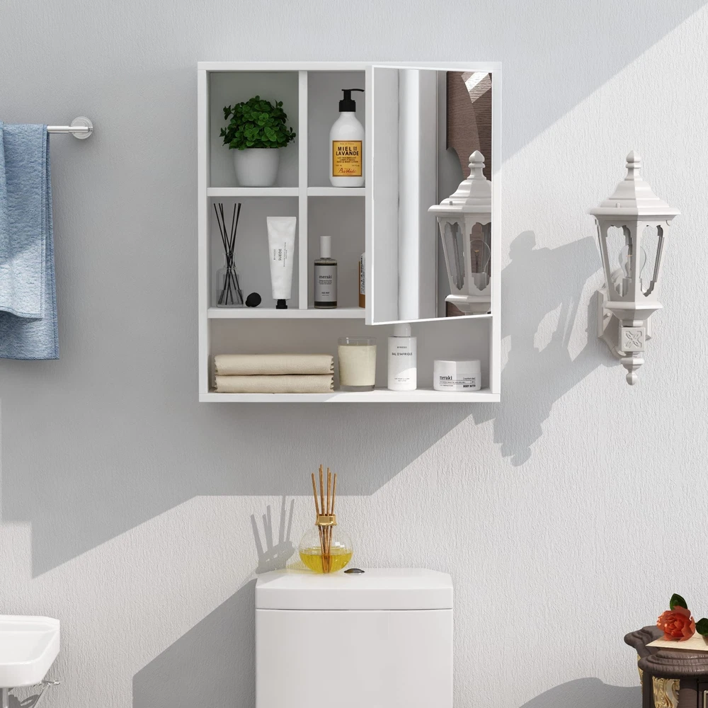 Bathroom Wall Mirror Cabinet, Medicine Cabinet with Single Door and Adjustabl...