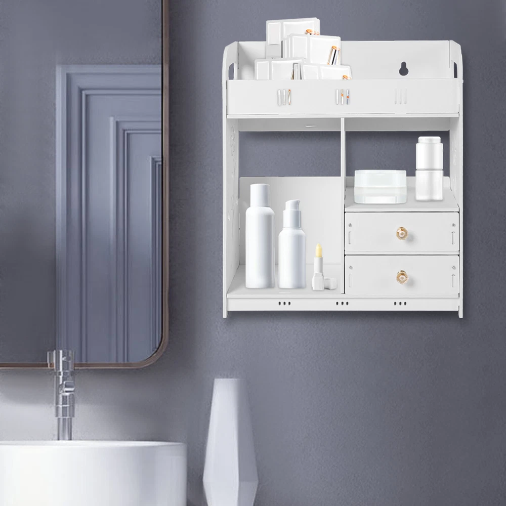 π welcome to aaertu π Description Knowing how to live must know how to use space effectively. This wall bathroom cabinet is made of high-quality PVC that is environmental-friendly and has a long life span. The sleek, minimalist design allows it to blend in with a variety of decorative styles and opens up new storage spaces. It is a small helper for your bathroom storage and makes your small home bigger and bigger. Key Features Efficient Organizer : This wall bathroom cabinet turns the wasted wall area into a spacious storage space to keep everything in order. Let's say goodbye to the crowded and messy table! High Load-bearing Capacity : It uses thickened frames and a strong nail-free adhesive, which can withstand a weight of 33 lbs (when the nail-free adhesive is completely solidified), so you can put many items without worrying. Selected Material : It is made of environment-friendly PVC, without any paint, waterproof, flame-retardant, moisture-proof, BPA-free and formaldehyde-free, which is very suitable for bathroom use. Large Storage Space : It adopts double drawers, two storage areas and a top platform, which can accommodate facial masks, cups, skin care products, decorations and other items at the same time, providing you with sufficient storage space! Elegant Appearance : It is elegant white that is simple and fashionable, with beautiful hollow patterns on the side, which is practical and more beautiful. It can not only be used as furniture, but also as home decoration, bringing comfort to your bedroom and bathroom, and providing you with a simple and convenient lifestyle Reasonable Structure : The open design makes it easy for you to access the goods on the cabinet. Most importantly, the 3.7-inch raised guardrail and the fence in front of it are designed to prevent your items from falling. Ideal Gift : What could be better than bringing your friends a gift that can help them store? This fashionable and practical bathroom rack will meet your needs. Easy to Clean : It has a smooth surface, so it is easy to clean. If there is any dust, you only need to wipe it with a wet rag. Easy to Install: It includes all necessary accessories, so it is easy to assemble. You can quickly assemble it under the guidance of installation instructions on the wall by reserving installation holes, saving space and not damaging the wall. Details Curved Edge : It is designed with curved edges, so it is not easy to scratch when you place and use items. Crystal Handle : The package contains 5 crystal handles, 2 of which are installed on the drawer, and the remaining 3 are installed on the bottom for hanging the articles with ropes. Application It is suitable for installation in smooth glass, smooth metal, smooth ceramic tile, smooth marble, frosted glass, solid wood wall, etc. It is suitable for your bedroom, bathroom, living room, closet, bookshelf or anywhere in your home. Specification Material: PVC Color: White Recommended Uses For Product: Bedroom Vanity Max Load-bearing Capacity: 15kg/33lbs Number of Drawers: 2 Package Size: 49*26*6.5cm/19.3*10.2*2.6in Product Size: 38*18*43cm/15*7.1*17in Drawer Height: 6.2cm/2.4in Height of Middle Storage Area: 14.5cm/5.7in Height of Top Baffle: 9.5cm/3.7in Gross Weight: 2.3kg/5lbs Net Weight: 2kg/4.4lbs Installation 1. Wipe the tiled walls clean to prevent them from peeling off due to moisture. 2. Find a suitable location to attach the non-marking hook and press it against the wall. 3. Apply nail-free adhesive to both sides of the cross-section of the side panels on the back of the product, stack them in dots and hang them on the nail-free hooks. 4. On the non-marking hook, horizontal inward pressure for a minute, and wait 48 hours for the nail-free adhesive to set before using. Package Included 1 * Wall Bathroom Cabinet 1*Chinese Manual All Accessories for Assembly Notes 1. Please note that it needs to be installed on a smooth and stable wall. It is not recommended to install it on a wall with an unstable structure. 2. Please allow the slight color difference caused by the shooting light and 1-3 cm error due to manual measurement, and make sure you do not mind before ordering. Payment Delivery details Terms of sales About us Contact us Payment We accept ebay payment γ Fees such as import duties, taxes are not included in the item price or shipping costs. These charges are the buyer's responsibility. Delivery details Shipping: 2-9 working days to: USA Terms of sales We maintain high standards of excellence and strive for hundred percent customer satisfaction. Feedback is very important to us. We hope that you contact us immediately before you give neutral or negative feedback, so that we can address your concerns. It is impossible to address issues if we do not know about them! About us Your satis faction is our ultimate goal. We work hard to earn your trust and future business. Our certified technicians have tested each item before shipping. The unit comes with 1 year limited warranty on all manufacturing defects. a) If you receive a defective item, you may return it or ask for a discount. Please contact us within 14 days after you receive the package. b) What you returned must be intact and in its original packaging as re? u. Customer is responsible for shipping costs of the returned item. c) We will cover the cost of shipping back t with the shipping rate indicated in the registration page. We will send you a new unit or refund the full payment you paid. Thank you. Contact us Business Hour Business Hour: Monday To Friday: 8:30 AM to 5:00 PM (Beijing China time) Due to time zones, our reply to your questions may not be immediately. But within above working time, we will reply your email within 24 hours. If it's non-workdays, please kindly be patient and wait till Monday. Please contact us with ebay message. Please feel free to contact us if you have any questions. Monday To Friday: 8:30 AM to 5:00 PM (Beijing China time) Due to time zones, our reply to your quest