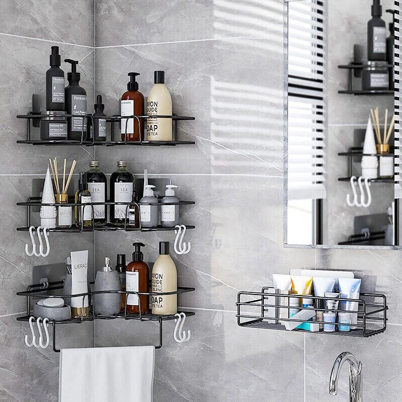 Bathroom kitchen Punch Corner Frame Shower Shelf Wrought Iron Shampoo Storage Rack Holder with 4 Suction Cup Sticker Hangers product information name:commodity shelf color:black/white applicable scene:bathroom/kitchen trait:convenient and practical size:as following picture shows Payment Delivery details Returns Contact Us Feedback Payment 1.We accept PayPal only. 2.Payment must be received within 7 business days of auction closing. 3.We ship to your eBay or Paypal address. Please make sure your eBay and Paypal address is correct before you pay. Delivery details We try our best to ship out same day for payment cleared before 5.00 PM (Pacific Time) , Order placed on weekend or holiday will be shipped on Monday or next working day. Below is the approximate delivery time to different countries (just estimated, not guaranteed): 7-25 working days to buyer in USA. Returns 1.We offer 30 days return policy. Please contact us within 30 days from the date you receive your order if you have any issues with the product and want to return. 2.All items must be returned in the original packaging and you must provide us with the tracking shipping number, specific reason for the return, and your eBay ID. 3.We will refund you FULL WINNING BID AMOUNT, upon receipt of the item in its original condition and packaging with all components and accessories included, AFTER BOTH Buyer and Seller cancel the eBay transaction. Or, you can choose to get a replacement. Contact Us All communication is done through EBAY MESSAGES ONLY. If any question, please feel free to contact us via "Ask seller a question" or "Contact Seller",We try our best to reply to your emails as soon as possible, due to high volume of daily incoming emails and time zone difference, we may not be able to reply your emails immediately. Please allow 1-2 business days for us to response. Feedback Feedbacks: When you receive the item and satisfied with the product, please leave us positive feedback. If for any reason you are not satisfied with your purchase from us, please contact so we can get to work and resolve this issue for you. Please don't leave neutral or negative feedback without giving us an opportunity to try and make it right. Our goal is to ensure a happy shopping experience with us. Your Positive feedback is very much appreciated!