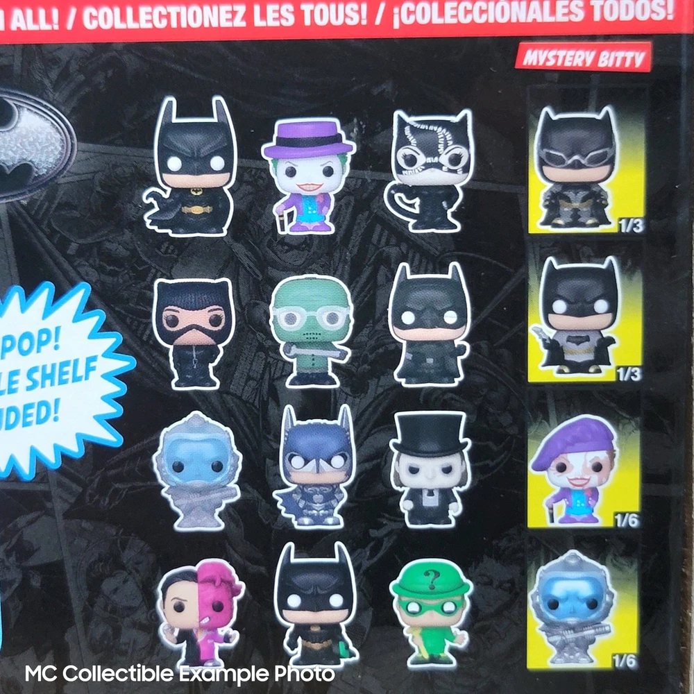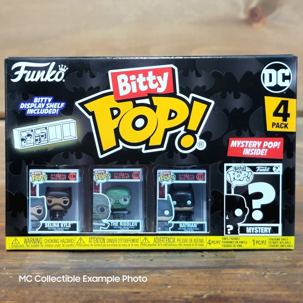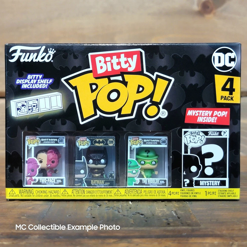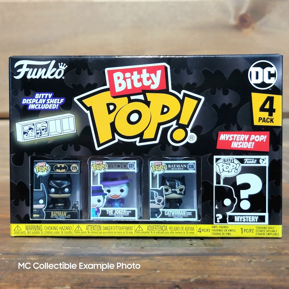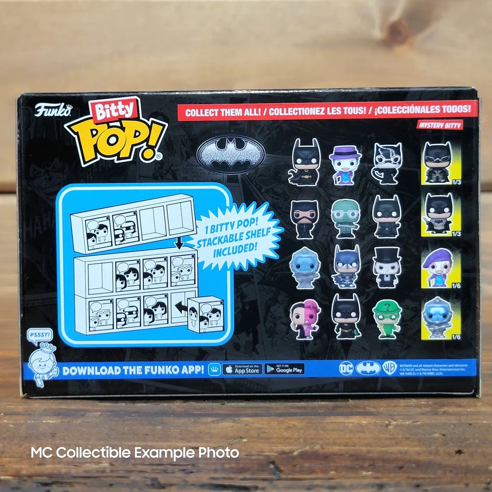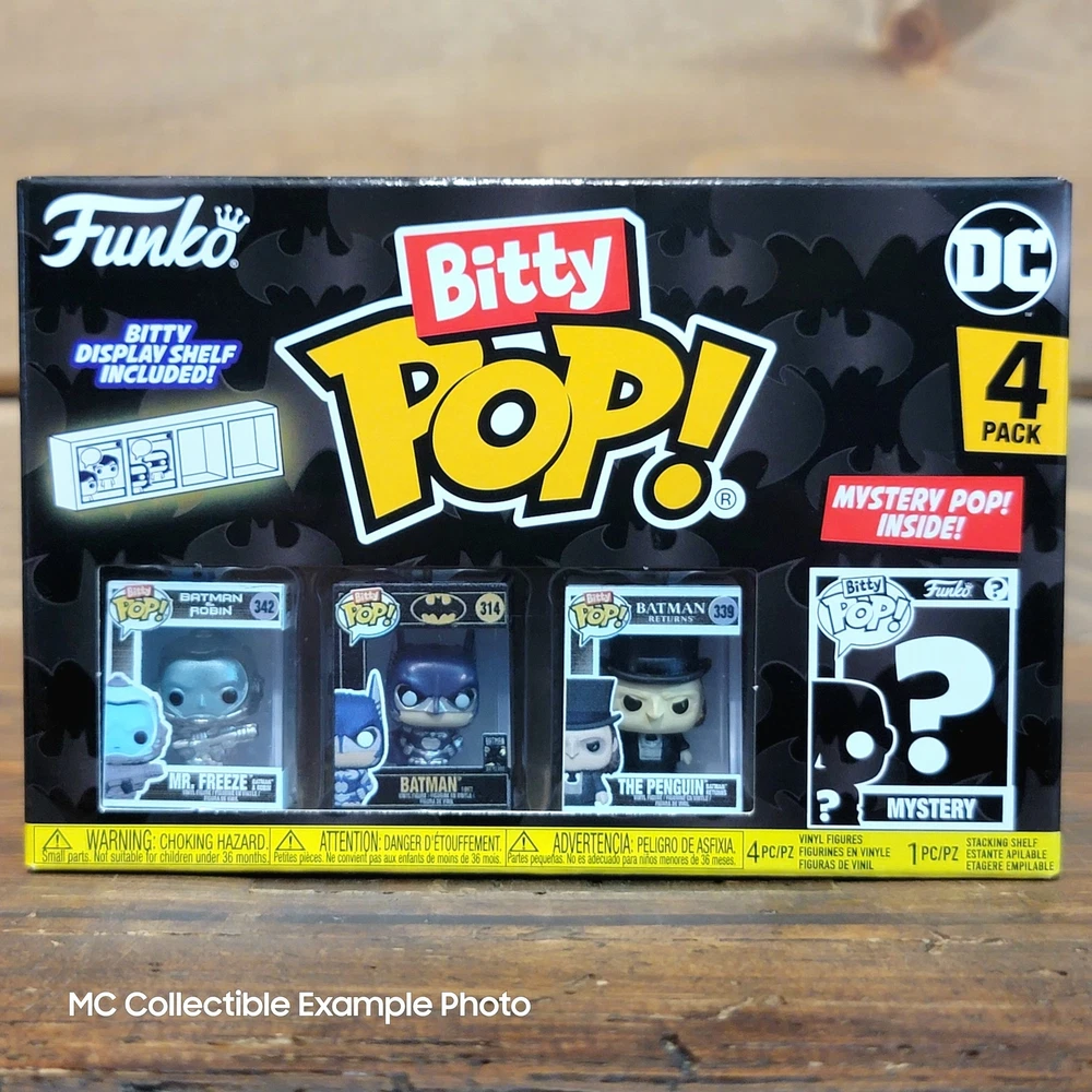 Batman 85th Anniversary Funko Bitty Pop! Mini-Figure Collection w/ Mystery Pops! Batman 85th Anniversary Funko Bitty Pop! Mini-Figure Collection w/ Mystery Pops! *Pictures are an example of the item you will receive. Read the full description before purchase.* All Action Figures and Funko Pops, sold by MC Collectible, are "IN HAND" and acquired from the Brand Manufacturer, GUARANTEED to be Genuine/Authentic. **Shipping automatically combines when multiple items are added to cart. Some big items may not qualify for combined shipping** Item Condition: Figure: New and Unopened in Original Packaging Packaging: Excellent - Near Mint or Better. (I do not guarantee mint condition packaging, but I will pick the best example available if you make the request before purchase.) Excellent - Near Mint means the packaging may contain one or more small creases, tears, soft corners, minor dings, scratches and/or scuffs, while still managing to display well on your shelf. (Item packaging with major tears, extreme creases and/or crushed boxes will NOT be part of this listing) **I F YOU ARE AN "OUT-OF-BOX" COLLECTOR or plan to open the item: I may have units with damaged packaging and be willing to offer a small discount depending on the damage.** * Smoke Free Environment* All items from MC Collectible are securely shipped with the collector in mind. This item will be boxed in packing material to help prevent damage during shipping. I am not a professional grader of anything. I may include my opinion of an item's condition, but do not guarantee you or any 3rd party grader will agree with me. This Batman 85th Anniversary Funko Bitty Pop! Mini-Figure includes: Batman 85th Anniversary Two-Face Funko Bitty Pop! Mini-Figure 4-Pack Batman 85th Anniversary Mr. Freeze Funko Bitty Pop! Mini-Figure 4-Pack Batman 85th Anniversary Catwoman Funko Bitty Pop! Mini-Figure 4-Pack Batman 85th Anniversary Batman Funko Bitty Pop! Mini-Figure 4-Pack Listing and template services provided by inkFrog
