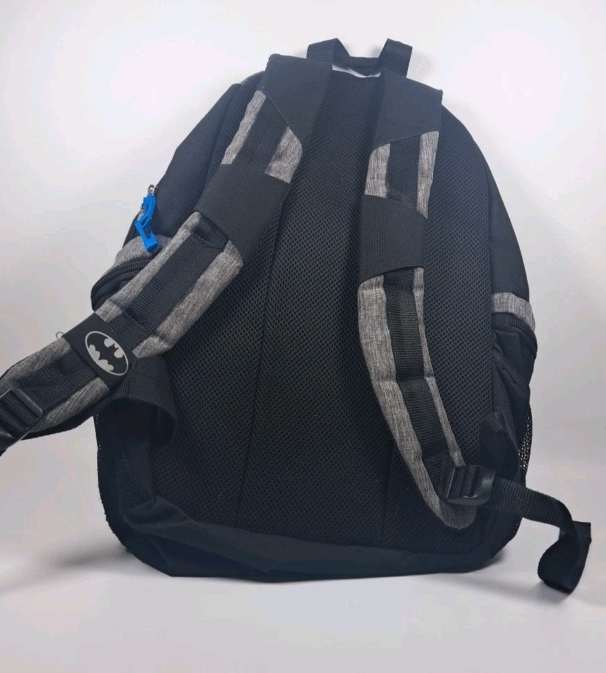 Features: Adjustable, Adjustable Strap, Breathable, Inner Pockets, Lightweight, Outer Pockets, Straps, Water Resistant, Zip-Around Character: Batman Style: Backpack Character Family: Batman Fabric Type: Blended Fabric Handle Style: Top Handle Department: Unisex Kids Accents: Strap, Zipper, Logo Handle/Strap Material: 100% Polyester Bag Height: 18 in Country/Region of Manufacture: China Material: Polyester Bag Width: 12 in Pattern: Solid Size: Medium Bag Depth: 6 in Lining Material: Fabric Brand: DC Comics Theme: School, Superhero Color: Blue Closure: Zip Seller Notes: “SMALL HOLE IN SIDE MESH POCKET - SEE PICTURES” Vintage: No Occasion: Travel