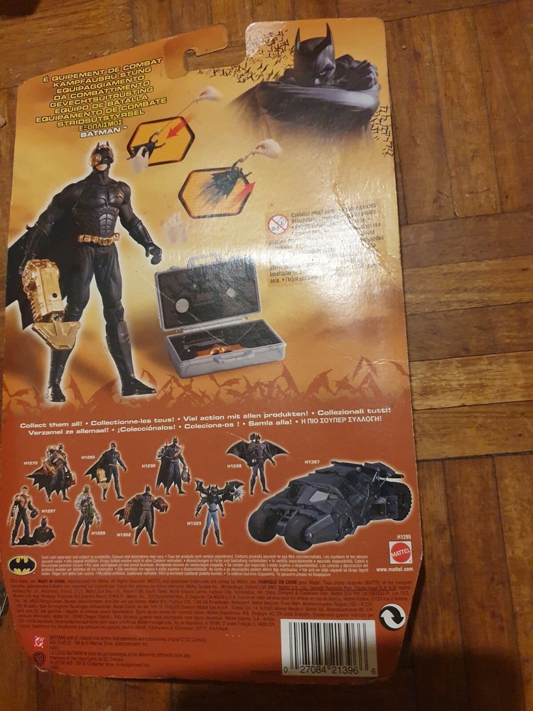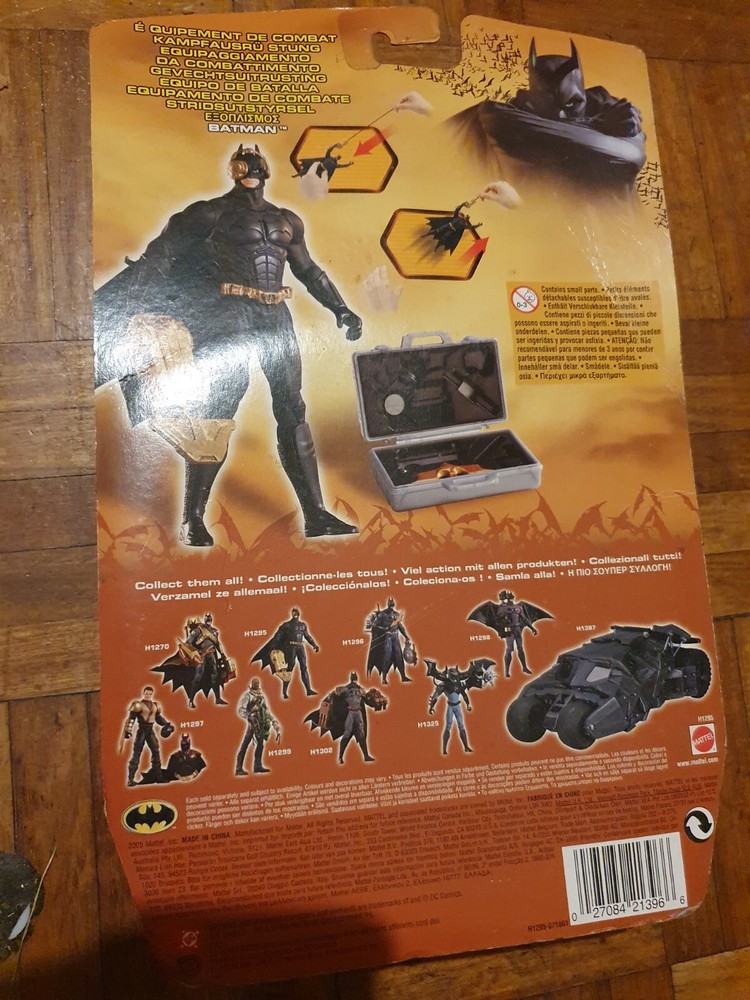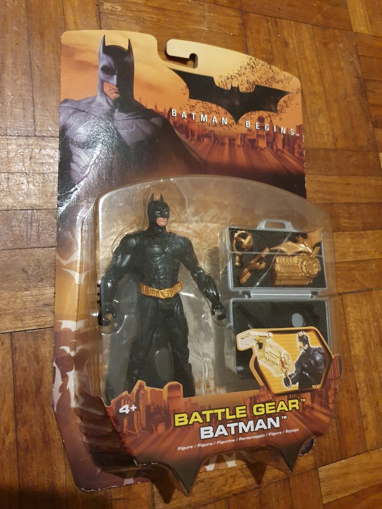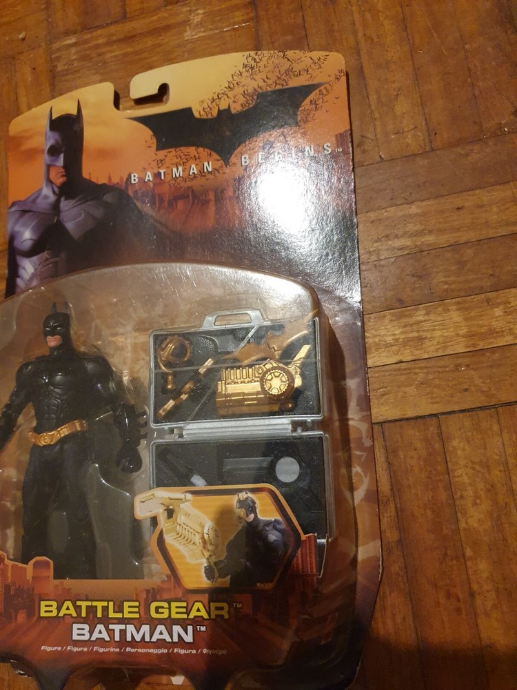 The Batman Begins - Battle Gear Batman Action Figure is a collectible toy based on the character Batman from the DC Comics franchise. Released in 2005, this sealed action figure is designed after the movie Batman Begins, capturing the essence of the dark knight in intricate detail. Perfect for fans of the Batman series, this figure embodies the iconic superhero in his battle gear, making it a must-have for any collector of action figures and memorabilia from the 2000s.