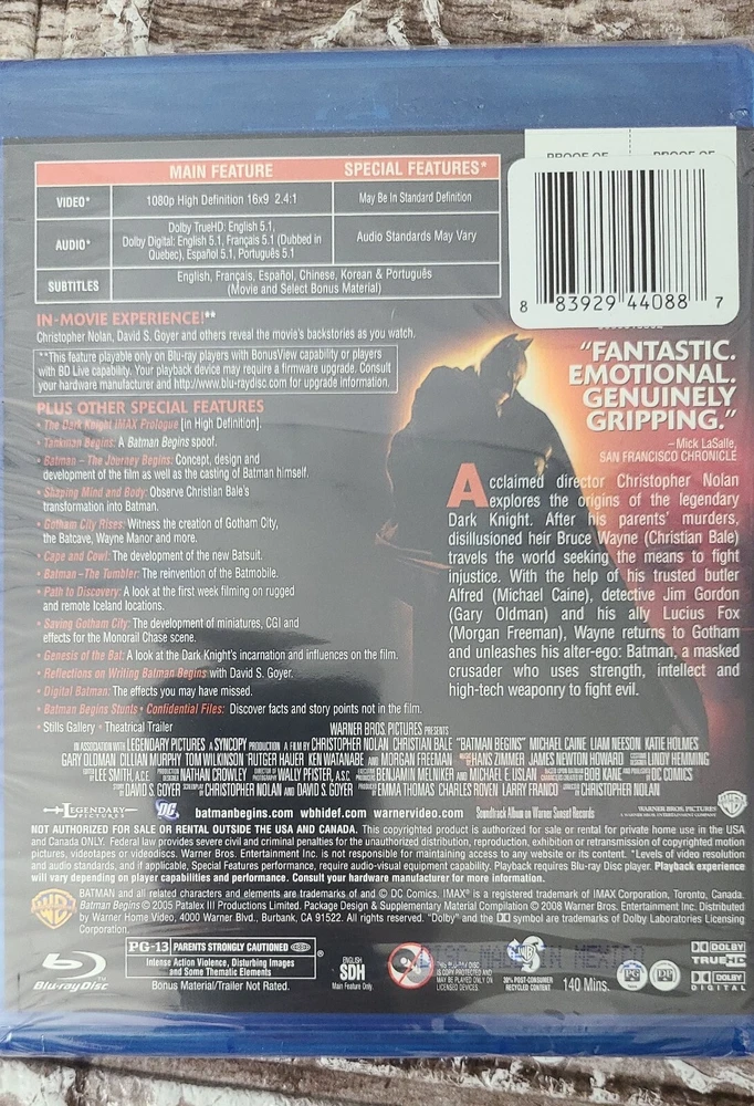 Batman Begins (Blu-ray/DVD, 2005) NEW
