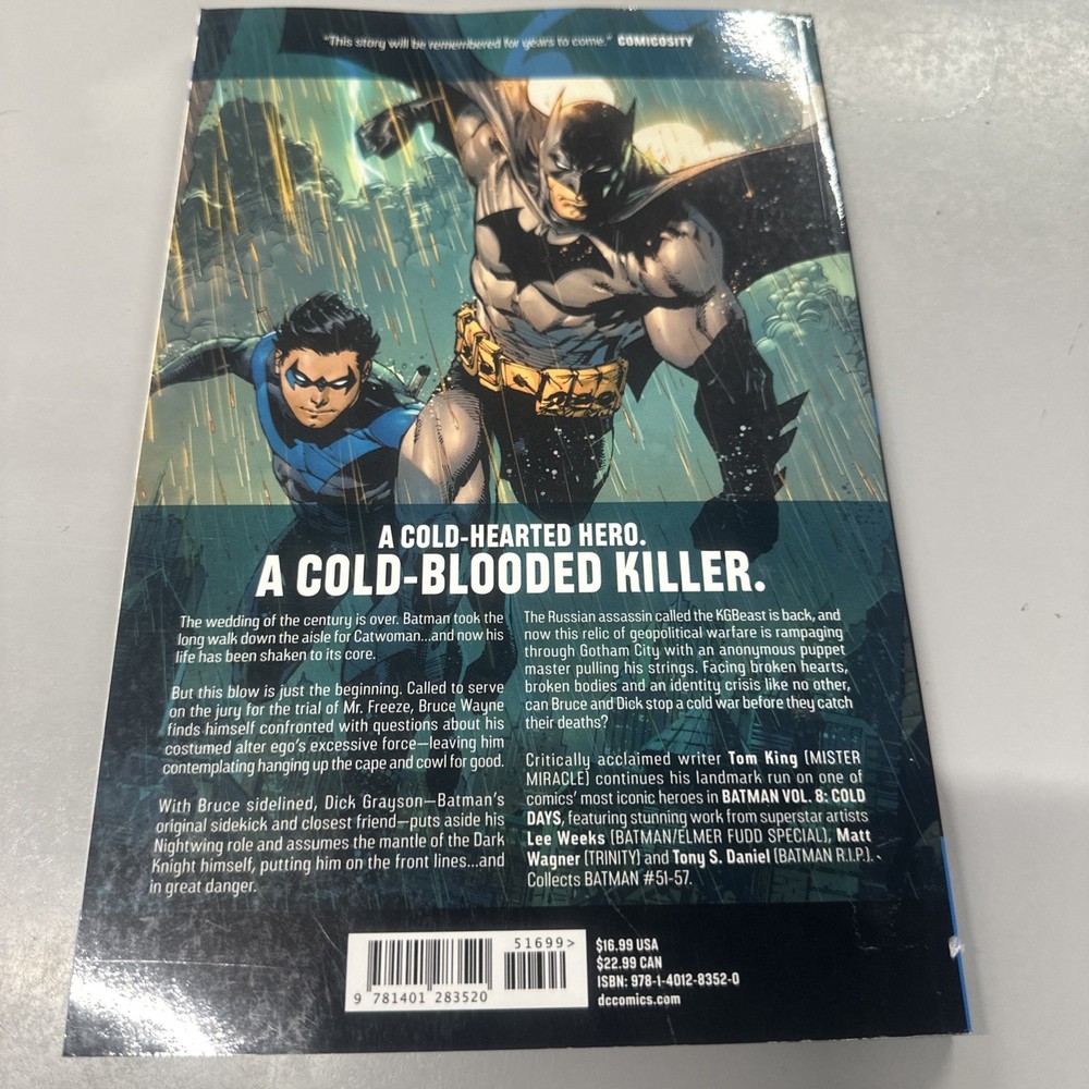 The Batman Rebirth Volume 8 Cold Days Softcover TPB Graphic Novel is a collection of comic stories from the Batman series published by DC Comics. With a focus on the character of Batman, this graphic novel features a variety of iconic villains such as the Riddler, Penguin, and Killer Croc, as well as guest appearances by Nightwing, Alfred Pennyworth, and the Joker. The softcover format makes it easy to read and collect, while the English language text appeals to a wide audience of superhero fans. This modern-age comic book is a must-have for fans of the dark knight.