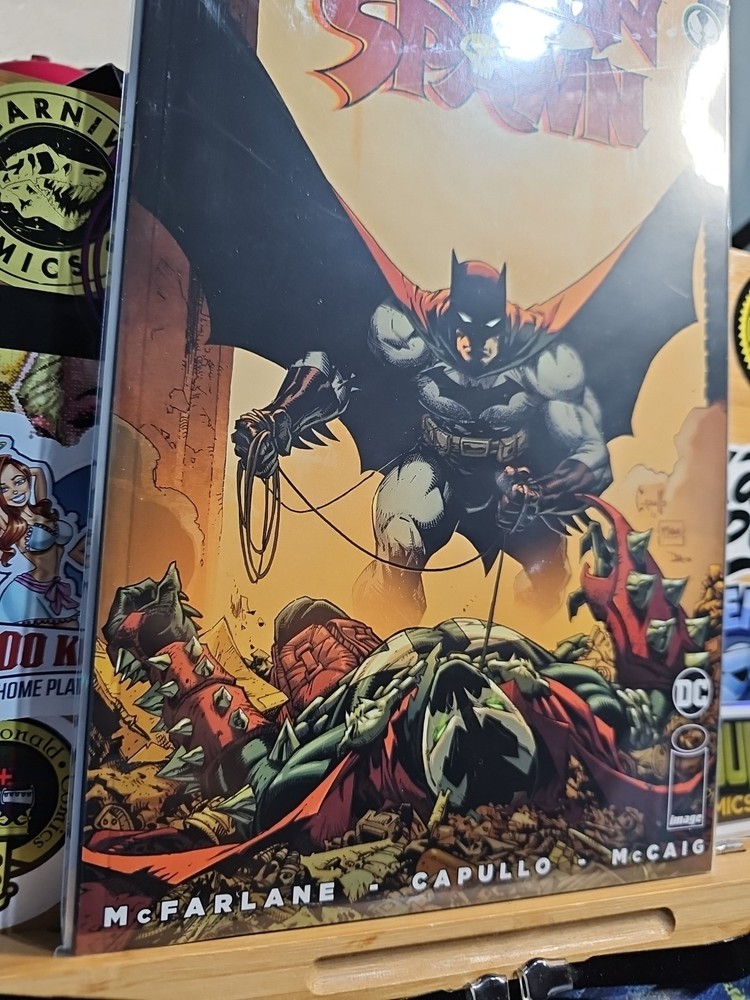 Dive into the dark and gritty world of Gotham with "Batman / Spawn #1," featuring the iconic Greg Capullo & Todd McFarlane Batman cover. This February 2023 issue from DC Comics brings together the formidable cast of Batman's universe, including villains like Joker and Bane, alongside the mystical presence of Spawn. The artistry of Dave McCaig, Todd McFarlane, and Greg Capullo sets the stage for an unforgettable visual experience.Crafted for fans of modern superheroes, this comic is a treasure for collectors and enthusiasts alike. With its rich storytelling from writers like Jonathan Glapion and Todd McFarlane, and a diverse array of characters like Catwoman and Nightwing, the series promises to deliver thrilling adventures. This English language issue, part of the Batman / Spawn series, is a must-have addition to your comic collection.