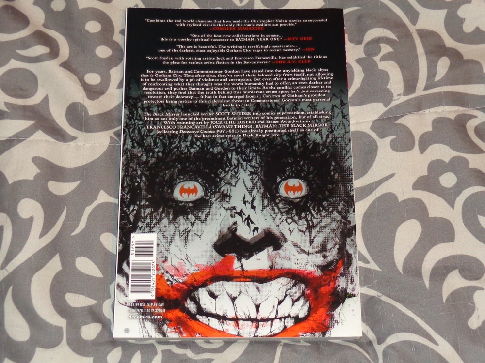 Batman: The Black Mirror TPB - DC Comics 2014 - By Writer Scott Snyder Comic is in very good condition The Black Mirror launched writer SCOTT SNYDER into comics superstardom, establishing him as not only one of the preeminent Batman writers of his generation, but of all time. With stunning art by JOCK (THE LOSERS) and Eisner Award-winner FRANCESCO FRANCAVILLA (SWAMP THING), BATMAN: THE BLACK MIRROR (collecting Detective Comics #871-881) has already positioned itself as one of the best crime epics in Dark Knight lore.