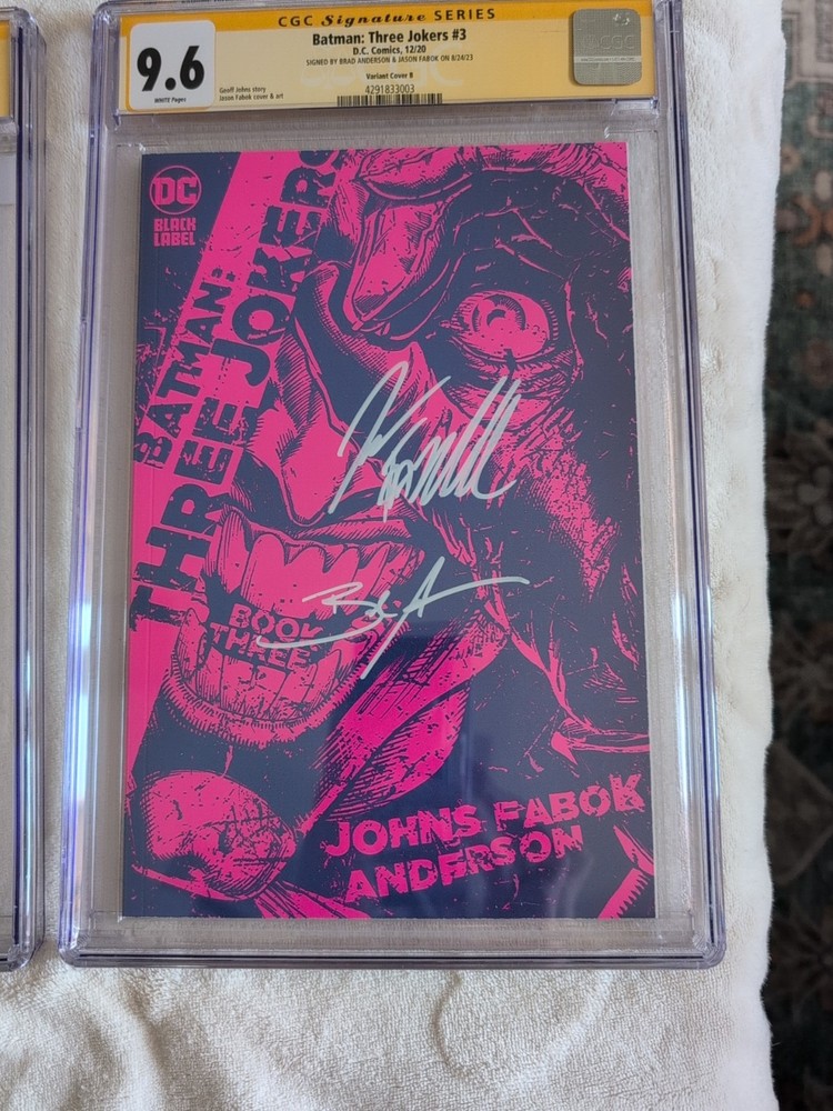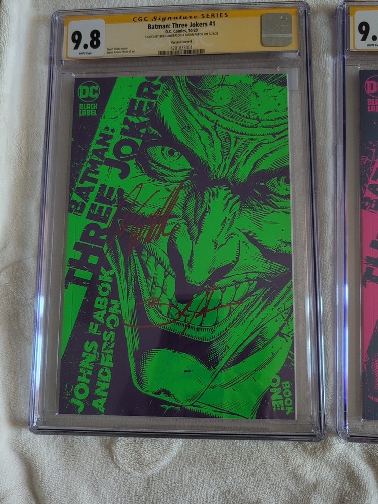 Batman: Three Jokers #1-3 Set | CGC 9.8 Signed by Geoff Johns & Jason Fabok | Sequential Certs! Up for sale is a stunning, high-grade collector's set of Batman: Three Jokers - all three issues graded CGC 9.8 Signature Series, each signed by writer Geoff Johns and artist Jason Fabok. This is a matching sequential-numbered set of all three books, making it an exceptional display piece and a rare opportunity for serious DC or Batman collectors.