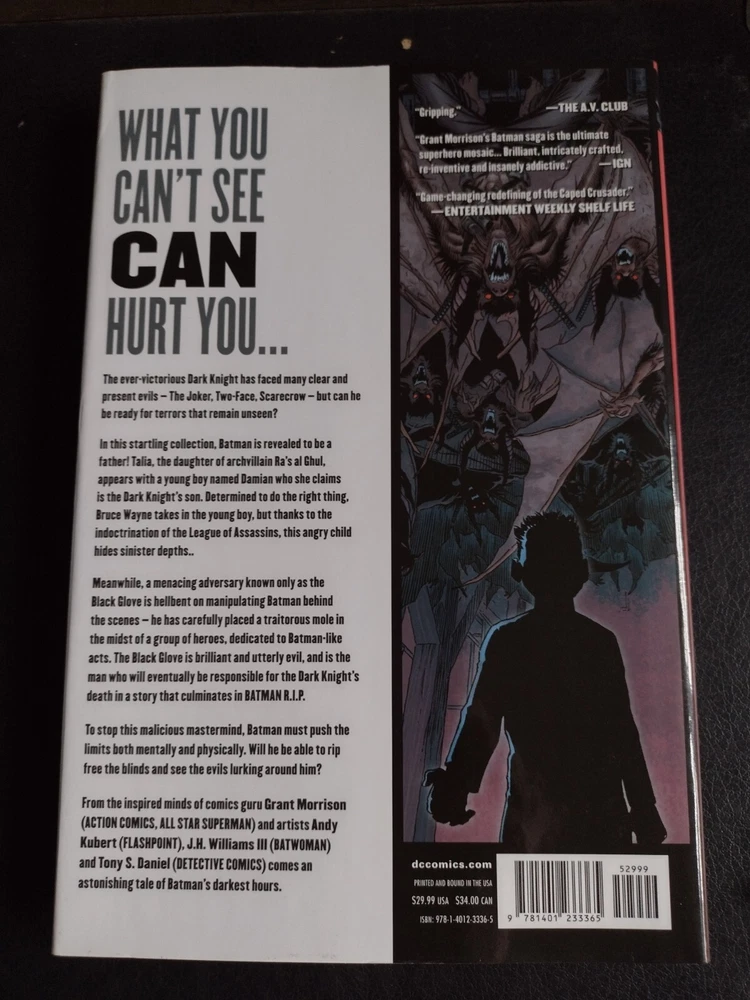 This Batman: The Black Glove Deluxe Edition comic book, published by DC Comics in August 2012, features an impressive lineup of talented artists and writers including Jesse Delperdang, Sandu Florea, Ryan Benjamin, Jonathan Glapion, and many more. The comic book is written in English and falls under the modern age era of US comics. The comic book is part of the Batman: The Black Glove series and features an engaging storyline that includes popular characters such as Batman, Robin, and Talia al Ghul. The cover art by Andy Kubert is stunning and the comic book is a must-have for any fan of superheroes or US comics.