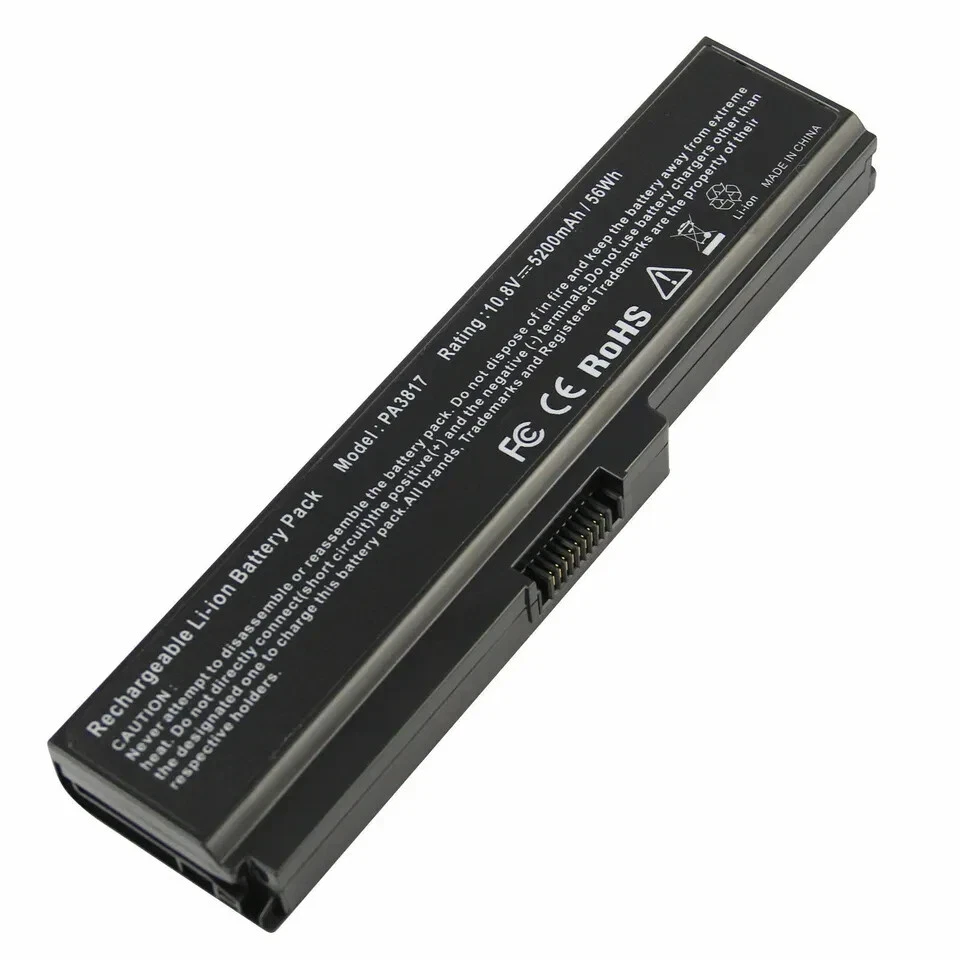 Battery For Toshiba Satellite L750 L700 L635 L640 L650 L735 L775 PA3817U-1BRS Specification: Battery type: Li-ion Voltage: 11.1V (Compatible with 10.8V) Capacity: 5200mAh Cell:rge cycles: 500 Compatible Models: Satellite C600D Satellite L750 Satellite L700 Satellite C675 Satellite A660 Satellite A660D Satellite A665 Satellite C675D Satellite L630 Satellite L635 Satellite L640 Satellite L645 Satellite L645D Satellite L650 Satellite L655 Satellite L655D Satellite L670 Satellite L670D Satellite L675 Satellite L675D Satellite L730 Satellite L735 Satellite L735D Satellite L740 Satellite L745 Satellite L745D Satellite L750 Satellite L750D Satellite L770 Satellite L770D Satellite L775 Satellite L775D Satellite M640 Satellite M645 Satellite P740 Satellite P740D Satellite P745 Satellite P745D Satellite P750 Satellite P750D Satellite P755 Satellite P755D Satellite P770 Satellite P770D Satellite P775 and P775D Satellite Pro L630 L640 L670 recha Compatible Part Numbers: PA3817U-1BAS PA3817U-1BRS