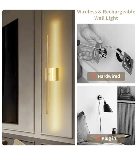 Return Policy Fast Delivery Trusted seller Battery Operated Wall Sconce Set of 2 10000mAh Rechargeable Wall Light with Remote Control, Dimmable LED Lighting Fixture for Bedroom Living Room,Brass Product Description Wireless Wall Sconce: The wall light comes with a metal wall hanging, which can be easily accessed and removed, taken down for charging or repositioned only by fixing the wall hanging in place. No more wiring when installing the wall light. Dimmable LED Wall Lighting Fixture: The LED wireless wall sconce supports adjustable light color temperature and is dimmable. Through the remote control, you can adjust the brightness and darkness according to the needs of the environment, which is convenient and practical. Remote & Touch Control: Wireless wall sconce set of 2 with remotes, that can be on/off, the brightness adjusted, and timing via remote. The touch button can turn on/off and switch 3 different color temperatures of light. 10000mAh Battery Operated Wall Sconces: Modern Rechargeable Wall Sconces built-in 10000mAh battery lighting time up to 20-22h, Charging duration 5-6 hours. No wiring installation, including charging cable, and plug not included. Wide Application: Straight wall lamps with modern style and bright functionality, both as lamps and as decorative objects at the same time, which create a cozy and warm atmosp, ideal for living room, bedroom, corridors, entryway, hallway, and dining room. Wireless Rechargeable wall sconces solve the inconvenience of installation while giving another option for home decor. Shipping Returns Payment Shipping Shipping is FREE to all addresses other than APO/PO boxes in the lower 48 states. All our stock ships from US-based warehouses. Shipped via USPS or UPS (depending on location and package weight) Unless stated otherwise, all orders will ship within 24-72 hours of your payment being processed. Check our feedback to see the great reviews of FAST shipping we offer. Returns Seller does not accept returns Payment We currently accept payment via eBay managed payments only. Once payment is cleared, we will dispatch your shipment within 1-3 business days. Please refer to the "Shipping" tab for more information regarding shipping speed to your destination.