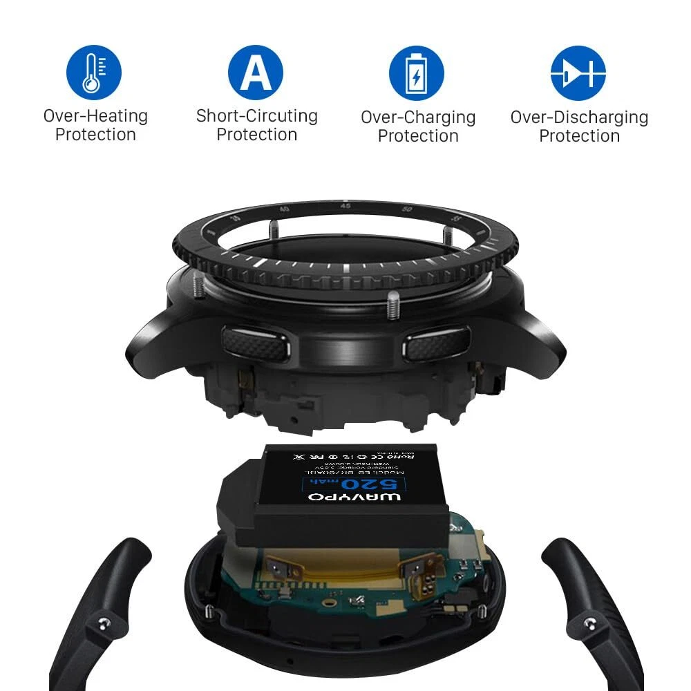 DESCRIPTION: ●Make your Gear S3 watch use like new; ● Same size as the original Gear S3 battery, perfectly matched; ●Built-in upgrade smart IC chip technology; ● Our batteries are all obtained RoHS & CE & FCC certified. COMPATIBLE MODEL: - Samsung Gear S3 classic - Samsung Gear S3 frontier / SM-R760 R765 R770 TECHNOLOGY: - Voltage: 3.85V - Watt-Hour: 1.54Wh - Capacity: 400mAh IMPORTANT NOTES: 1. Please double check to make sure the battery matches your cellphone model. 2. Please notice that use up all the power of battery for the first time before charging, and then take a full charge, thus the battery can be reached the optimum effect of using. 3.Please remember that its full performance and longevity is only achieved after 3 to 5 complete charge and discharge cycles. 4.Please keep the battery dry and away from moist and corrosive materials. PACKAGE INCLUDED: 1 x S3 Frontier Battery 1 x Repair Kit ⌚ [RESTORE YOUR GEAR S3 WATCH]: Equal to your original battery, 520mAh/ 3.85V Li-ion Battery perfectly matches for Gear S3. Restore your watch to Like-New performance. ⌚ [COMPATIBLE MODEL]: This Gear S3 Replacement Battery Compatible with Samsung Gear S3 Frontier SM-R760, SM-R770, SM-R765 ,Gear S3 Classic, SM-R760, R770, R765. ⌚[DURABLE LONG-LASTING] Built-in upgrade smart IC chip technology, and our battery is tested under strict quality control, RoHS & CE & FCC certified. ⌚[USEFUL REMINDER] : Please double check to make sure this battery matches your device model. This battery sent with little or no power, please charge it 6-12 hours before using. ⌚[Worry-Free] Protecting the interests of our customers. We are providing 12 Hour online customer service and 30 days money back guarantee. If you have any question, please contact us first, we will provide you with help and solve problems in the first time.