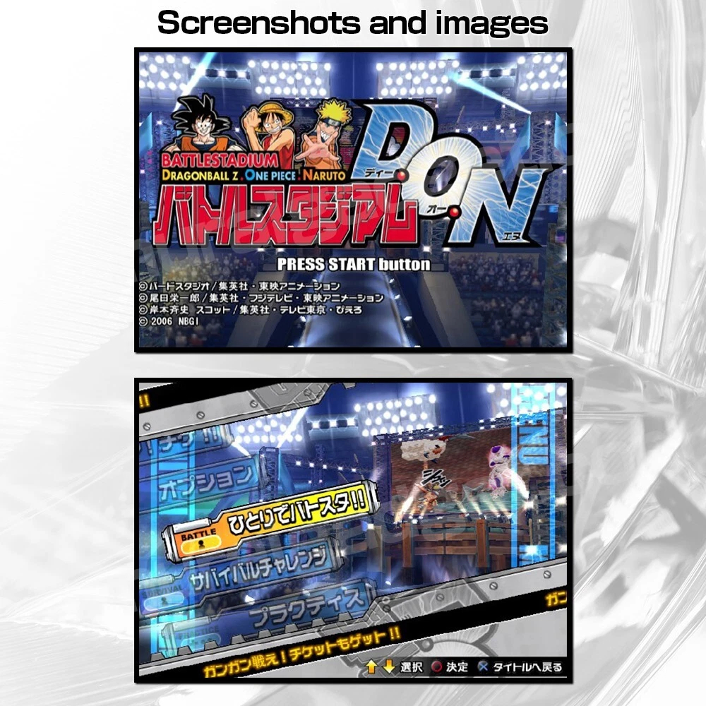 Battle Stadium D.O.N Fighting for One Piece - Japanese Version - ※Region Code:NTSC-J (Japan) Description ■Set Contents(2Games) (1)Battle Stadium D.O.N (2)Fighting for One Piece ■Product Features Battle Stadium D.O.N is a game in which the three most popular comics of Weekly Shonen Jump, "Dragon Ball Z," "One Piece," and "Naruto" compete. ■Product status:Very Good ■Product content (1)Original Package (2)Manual (3)Game Disc Payment Buyers accept a variety of payment methods including credit and debit cards, Apple Pay, Google Pay and PayPal. Shipping Shipping is Economy and Expedited and Standard. ■Economy Shipping:Free Shipping ■Expedited and Standard Shipping:FedEx or EMS and Yamato Japan(There is an extra charge.) ※Depending on the shipping area, only Economy Shipping is available. Notice ■The language of the game is Japanese. ■Platform:PlayStation 2 ■PlayStation 2 is not included. ■The region code for this game is Japan. International Buyers - Please Note: Import duties, taxes, and charges are not included in the item price or shipping cost. These charges are the buyer's responsibility. Please check with your country's customs office to determine what these additional costs will be prior to bidding or buying. If the cancellation is due to the buyer,we will charge a PayPal fee. If there is a remote charge for your address,we will charge you for additional shipping. Thank you for your understanding.