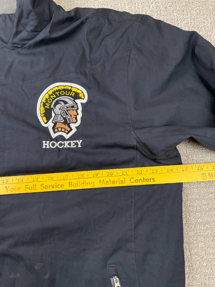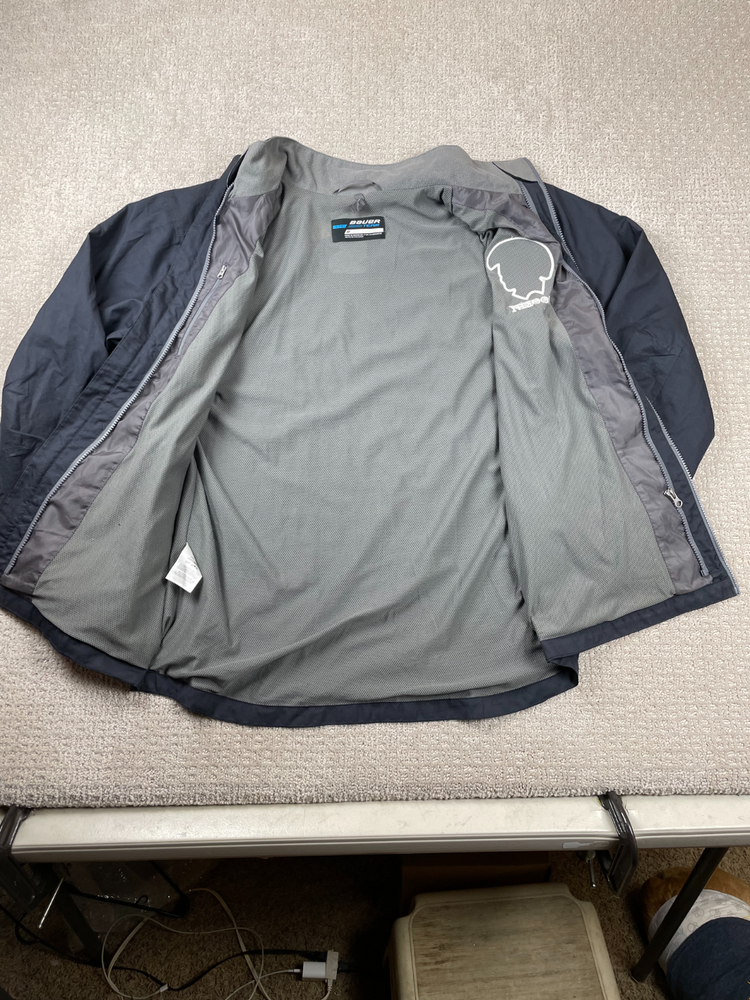 The Bauer Team Jacket is a warm and stylish men's hockey full zip windbreaker in black. Made of durable polyester, it features a full zip closure, making it easy to put on and take off. The jacket is machine washable and designed for winter, fall, and spring seasons. With a regular fit and logo accents, this windbreaker is perfect for casual wear and hockey activities, providing both comfort and style for everyday wear.