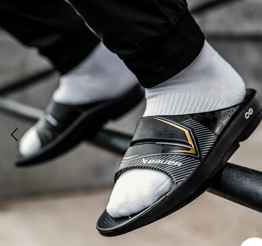 The Bauer x Oofos Sport Flex Slide is a unisex sandal designed for sports enthusiasts. Featuring a slip-on closure and a rubber upper material, this slide is easy to wear and provides comfort during physical activities. The black color and sports-themed design make it a stylish choice for both men and women. Made in Vietnam, this Oofos Bauer Sport Recovery model offers support and flexibility for the feet, making it an ideal option for those looking for a comfortable and functional sandal for their active lifestyle.