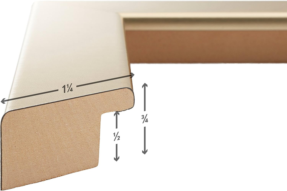 Modern style; brushed gold appearance; smooth laminate wrap finish (NOT ACTUAL METAL) Frame includes: clear acrylic facing, rigid cardboard backing and wire hanging hardware kit (some assembly required) Frame holds a 24 by 36-Inch photo/print/poster (viewable area reduced by .25 inches on each side due to frame lip) Frame moulding is 1.25 inches wide; solid MDF construction Frame is designed for WALL HANGING only (hanging hardware allows for portrait or landscape orientation) Product Description Craig Frames American-made & Trusted for Over 30 years Craig Frames offers hundreds of styles and sizes. Our products include picture frames, poster frames, photo frames, collage frames, document frames, framed maps, matting, bulletin boards, & more. A Trusted Brand & US Manufacturer Offering a Vast Selection of High Quality Home Décor Products Enjoy a vast selection of highly rated, affordable, professional quality picture frames and poster frames for wall hanging or table top use. Craig Frames also offers 2-Packs & 4-Packs for gallery wall sets, large art projects, or wholesale purchases. Styles include Modern, Rustic, Farmhouse, Boho (Bohemian), Ornate, Metallic, Weathered & Distressed, and more. Most frames are available in 30+ popular sizes, and many are available in 500+ custom frame sizes. With more than 45,000 Seller Ratings, thousands of customers continue to enjoy our American-made picture frames for their home décor projects. Living room, bathroom, kitchen, bedroom, nursery, or office; we're confident you'll find the perfect style and size for your decorative project or business needs. Visiting our Brand Store provides a simple, well organized, way to discover framing solutions for every project or occasion. (Click 'Visit the Craig Frames Store' above) Exceptional Value, Selection, Quality, and Service Styles Available Modern, Farmhouse, Contemporary, Rustic, Boho, Antique, Ornate, Weathered, Distressed, Metallic, Natural, & More Sizes Available Most frames are available in 30 or more popular picture frame sizes. 500+ custom frame sizes available in some styles.. Occasions Birthday, Mother's Day, Father's Day, Christmas, Graduation, Baby Shower, Home Renovation, Off to School, & More. Quality American-made in Michigan by professional framers with materials sourced primarily in the USA. Reputation More than 45,000 seller reviews supporting our quality craftmanship and service. Service US based support team providing real-time service & solutions What Customers are Saying "Excellent service, safe packaging." "Actually arrived ahead of estimated delivery date" "Perfect frames for my antique posters! Very nice." "Amazing, better than I had envisioned." "Well packaged and arrived on time in perfect condition" "Sturdy, very well made frames." "Thank you for sending this so fast! It is just what I wanted."