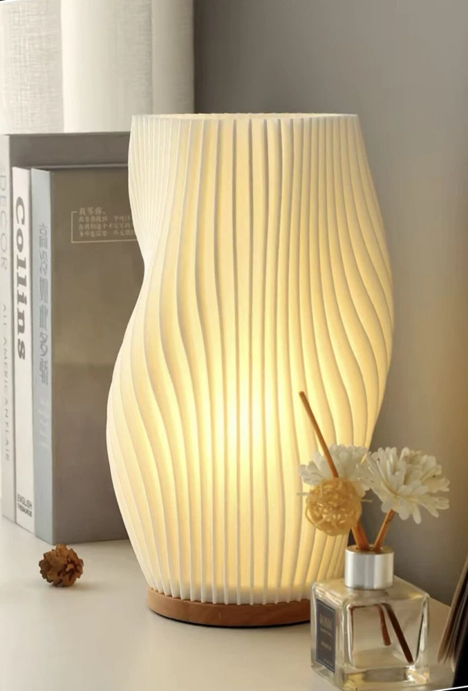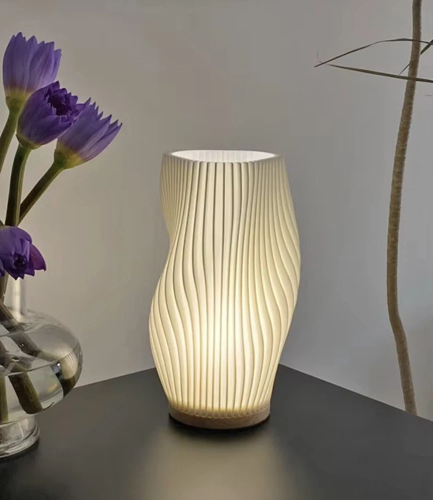 Introducing a stylish and functional bedside table lamp that will add a touch of Mid-Century Modern charm to your bedroom. This lamp features a unique spiral design and is made of high-quality materials such as wood, stainless steel, and glass. It comes with a USB power source and can be controlled with a knob control. With a semi-matte finish this lantern is perfect for both unisex baby and toddler, and unisex adult use. It has a light sensor type and emits a white, clear light color, making it a great addition to any bedroom decor. This original, designer piece is perfect for those who appreciate art, advertising, and romantic themes.