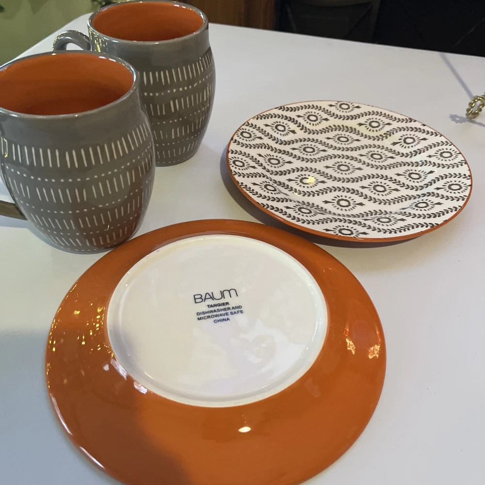 Baum 2 cups 2 salad plate’s turquoise orange bottom