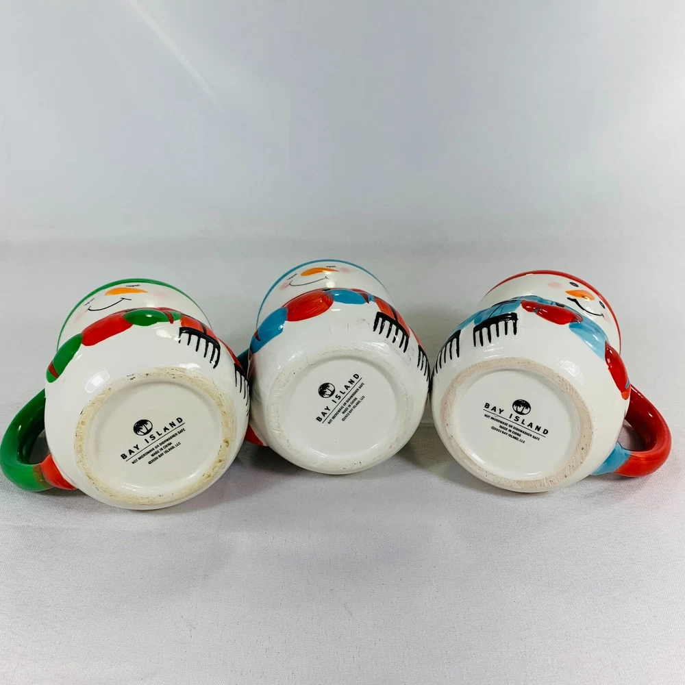 Get into the holiday spirit with this delightful Bay Island Christmas Snowman Hot Cocoa Coffee Mug Cup Ceramic Set 3. The set includes a novelty mug, coffee mug, and a cup, all featuring a charming snowman design in a mixed pattern of colors. Perfect for Christmas or any occasion, these mugs are made of high-quality ceramic and have a capacity of 8 fl oz. The farmhouse style and Christmas theme make these mugs a great addition to any holiday decor. They are decorated with a fairytale & fantasy design and are perfect for serving hot cocoa, coffee, or tea. This two-piece set is made on Christmas Island and is perfect for a service of three. See photos for item height. Any imperfections are shown in pictures. We can do combined shipping! See what else you'd like from our store! đź’™Retro and Beyond