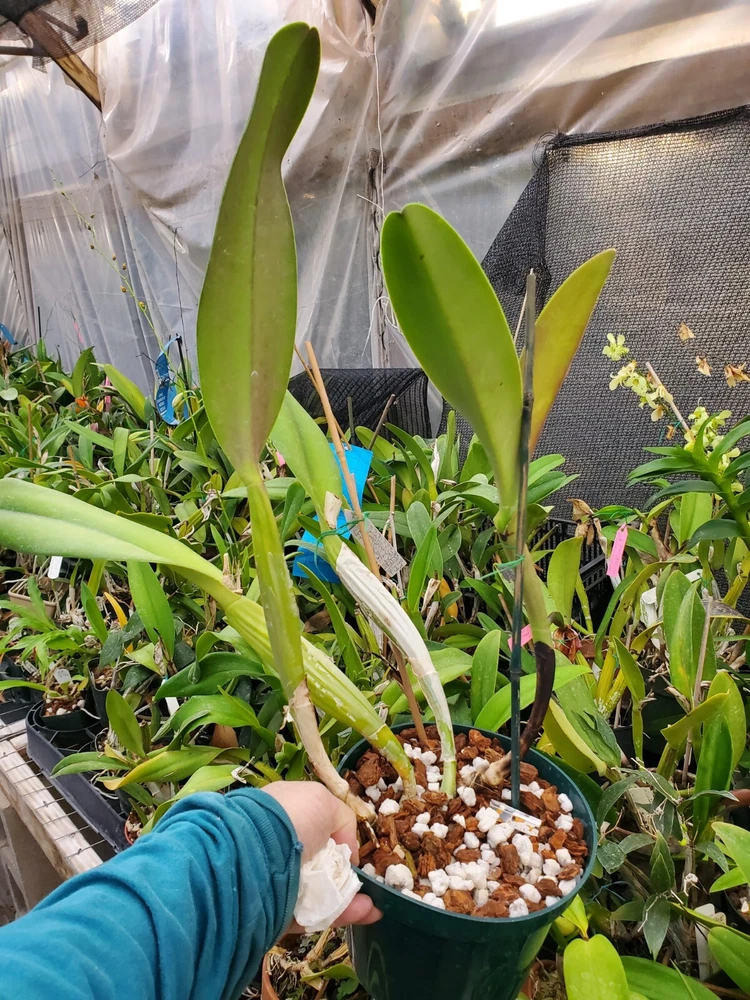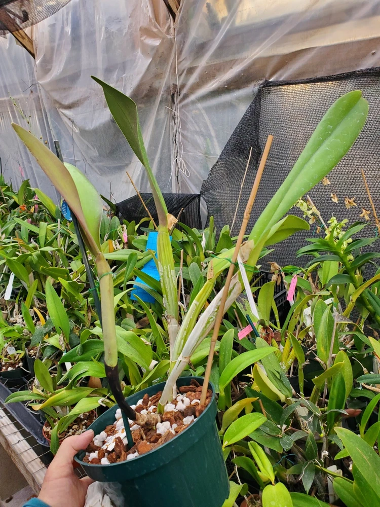 This is a division of Rlc. (Bc.) Willis Harrington (Margarite Fournier x c. Trimos). It was registered by S.Low in 1937. It came from Canaima Orchids.I believe it originated at Lines Orchids in the states. A lot of special orchids were sent to American orchid nurseries during world War 2 to safe guard from bombings. It just tested clean of virus. This is a nice, shapely pink cattleya. Flowers are 7 inches or more across! It blooms in March normally. It takes typical cattleya culture. Easy to grow and bloom. It was just re-potted so not established yet. The flower pictures are of this plant.. the plant pictures are what you are bidding on. It is the ONLY piece I have to sell.