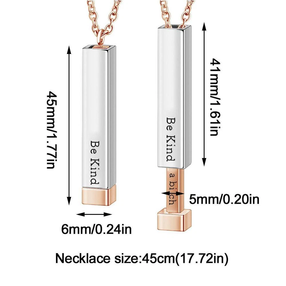 Description Description&Preview shipping&policy Description: Product Description: 1. Product Name: Be kind of a bitch necklace 2. Product size: 45mm/6mm(1.77in/0.24in),41mm/5mm(1.61in/0.20in) 3. Necklace size:45cm(17.72in) 4. Product color: as shown in pictures 5. Product material:Stainless steel Product features: 1. Unique Design: This "Be kind of a bitch" necklace features a bold and edgy design, making it stand out from the crowd. 2. High-quality Materials: Made from durable and long-lasting materials, this necklace is designed to withstand everyday wear and tear. 3. Stylish and Meaningful: With its empowering message, this necklace serves as a reminder to stay true to oneself and not let negativity bring you down. 4. Versatile Accessory: Perfect for casual or trendy outfits, this necklace adds a touch of attitude and personality to any look. 5. Best Gifts: With its unique and eye-catching design, this necklace is perfect for adding a touch of attitude and personality to any outfit. Shipping includes: 1 pc necklace Preview: Thank you for your purchase Problems? You can follow below process to contact us. There is a time zone difference,but we will do our best to quickly response to your questions: Shipping ● We will arrange shipping for you within 24 Hours after payment cleared except the holidays. ● We always send the item to the address you give us on Payoneer to ensure the security of the item. If you have changed your address, or want us to ship to another address, please change to the new address when you pay us with Payoneer, otherwise we will not be responsible if the package is lost. Payments We accepts Payoneer only If you have any questions about the payment,please contact us through eBay message. Import Duties In case some duty is due Upon delivery, it is your responsibility to meet that expense and this may cause delays to delivery schedule and you may have to pickup goods at the customs office. Terms & Conditions By bidding on this item,the Buyer agrees to all of the terms and conditions as outlined in this listing .please ensure to read and agree to All eBay terms and Conditions before bidding. All pictures are for illustration purpose only and Colours may vary slightly. Our store obeys all eBay Rules and Policies. Returns Policy To Return an item you must contact us and take photos of your item to clearly show any damage or unusual aspects of it. Approved returns will be subject to inspection on arrival. Items must be returned in original condition with all original packaging. All shipping and handing charges are non-refundable Return delivery costs are the responsibility of the buyer. We will cover the cost if sending replacement/repaired items. Within 7 days after receiving your products, we offers a no-hassle 7 day exchange/replace only if your items are found to be defective by manufacturer.