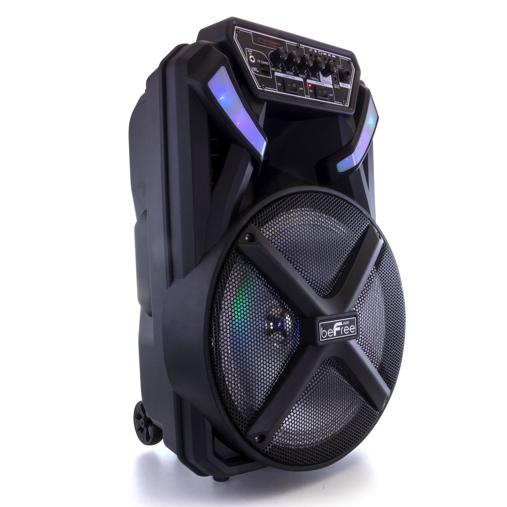 Take the party anywhere with the beFree Sound 12" BT Portable Rechargeable Party Speaker! This 10 lbs. party speaker is fully mobile with rolling wheels and a carrying handle for easy transportation. Not only is this speaker mobile, but this system comes complete with sound reactive lights, USB/TF compatibility, a remote control, and an FM radio for an all in one party experience!Item Dimensions: 20.50" x 12.00" x 11.00"Item Weight: 10.00lbs Free Shipping Over $49.99* Details beFree Sound 12 Inch BT Portable Rechargeable Party Speaker - Black Product Description: Take the party anywhere with the beFree Sound 12" BT Portable Rechargeable Party Speaker! This 10 lbs. party speaker is fully mobile with rolling wheels and a carrying handle for easy transportation. Not only is this speaker mobile, but this system comes complete with sound reactive lights, USB/TF compatibility, a remote control, and an FM radio for an all in one party experience! Item Dimensions20.50" x 12.00" x 11.00" Item Weight10.00lbs