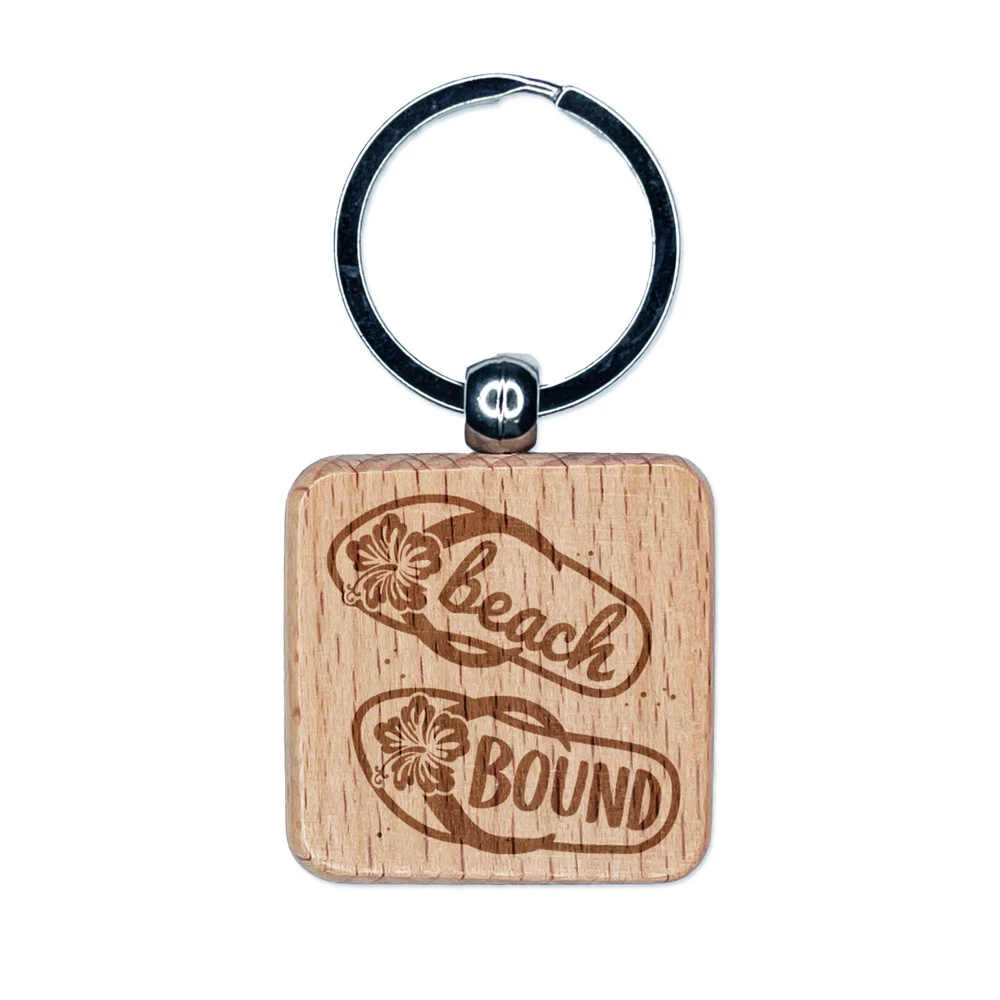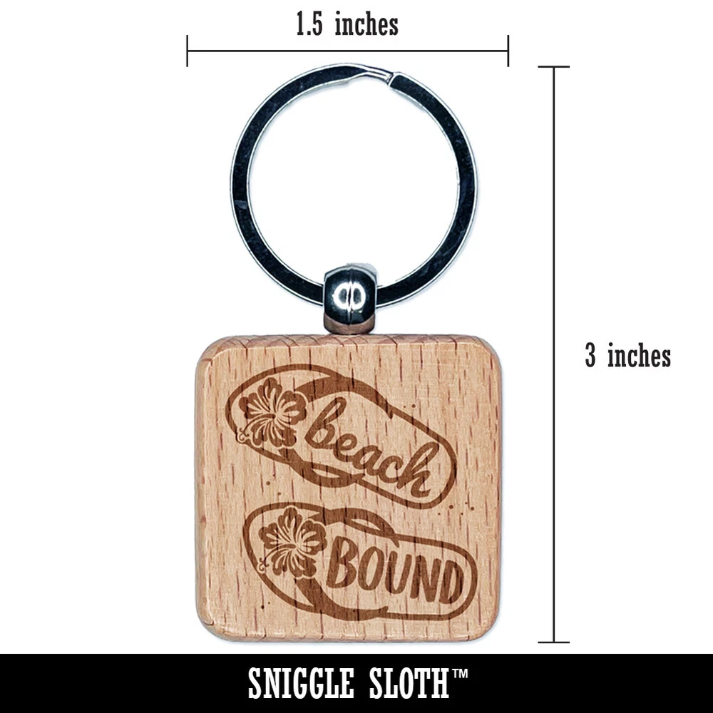 Beach Bound Sandals Flip Flops Hibiscus Engraved Wood Square Keychain Tag Charm