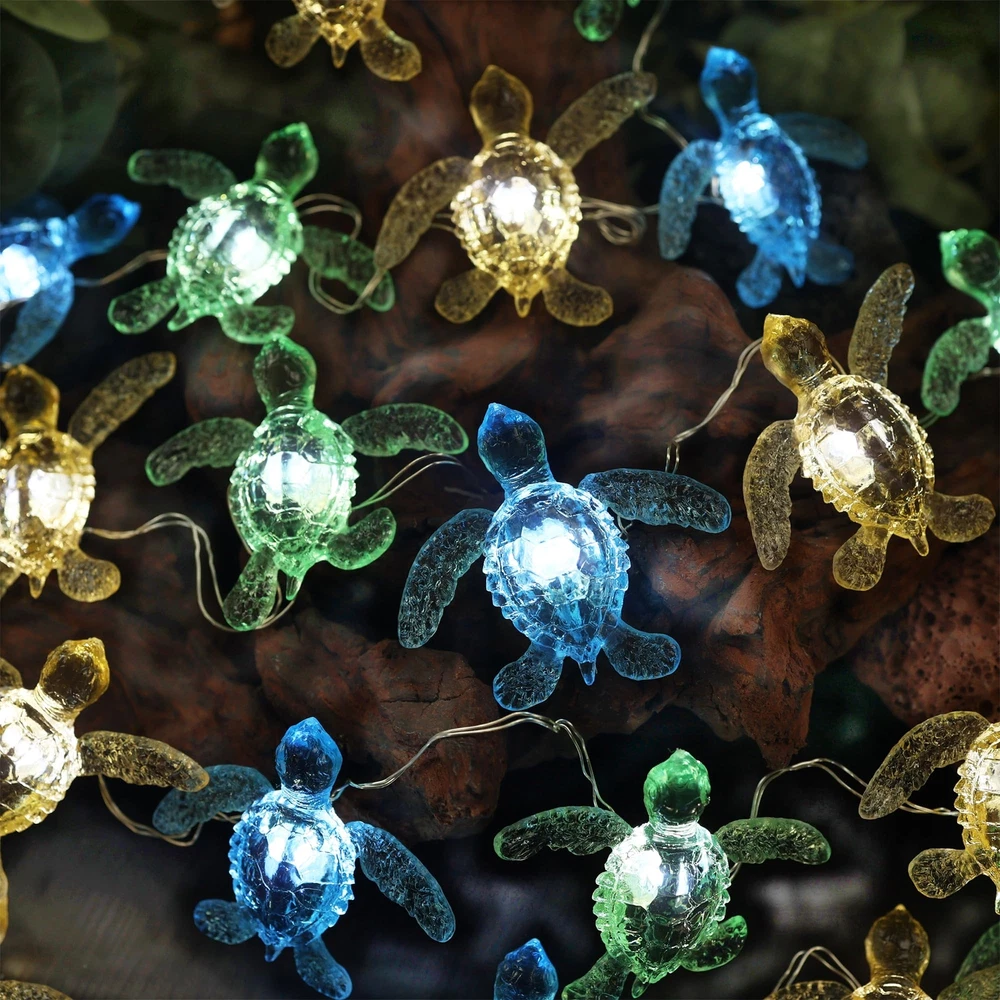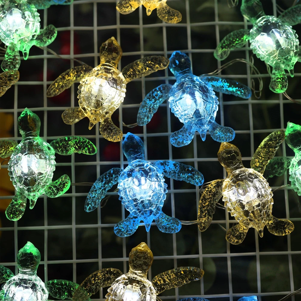 Islands and beaches are always my first choice for vacation. The endless blue sea level always calms my heart. I also like free diving. Below sea level is like another world, which makes me forget all the unhappiness and boredom in life. Countless kinds of fish and turtles are like angels in this heavenly world. For some reason, my young son is also obsessed with the world. He loves all the creatures in the ocean for no reason. Therefore, it has become a great pleasure for me to observe the creatures in this world and bring their cutest forms to life. I started with sea turtles and poured into all my love for this blue world. I hope to share this feeling with you through my design. 【The Moment of Beginning of Life】 Imagine an adorable fleet of tiny turtles crawling out of the sand carefully and flopping their way towards sea, leaving the beach behind them until their miraculously return. That is the moment inspiring me to create this turtle Lights. I wish this item could remind everyone that wonderful moment when it turns on every night. 【Three Postures in Three Colors】The little turtle in each string have 3 different poses, corresponding to their movements when they climb to the sea. The size is very close to the real baby turtles. 【USB Plug In, Battery Pack is Included for Portable Use】 This LED rope lights are connected with an USB, it will has maximum brightness when plugged in a USB socket, Battery pack is included in case of using portable. It can be used as a good night light to accompany your child to sleep peacefully every night. Also suit for Birthday party, Christmas décor, ocean themed bedroom and bathroom. 【Remote Control Provides Timer and Flicker Function】6 Hrs build-in timer provides automatic shut off (6 hours on and 18 hours off and 6 hours on again), plus brightness dimmer and flicker function, easy to use. The remote also offer 9 different flicker mode and speed. You can easily control the lights even when it is out of your reach. 【Perfect Gift for an Ocean Lover】It could be used as night light in a nursery room since the light is gentle and soft. A perfect touch to an Ocean themed Christmas tree or your bedroom decor