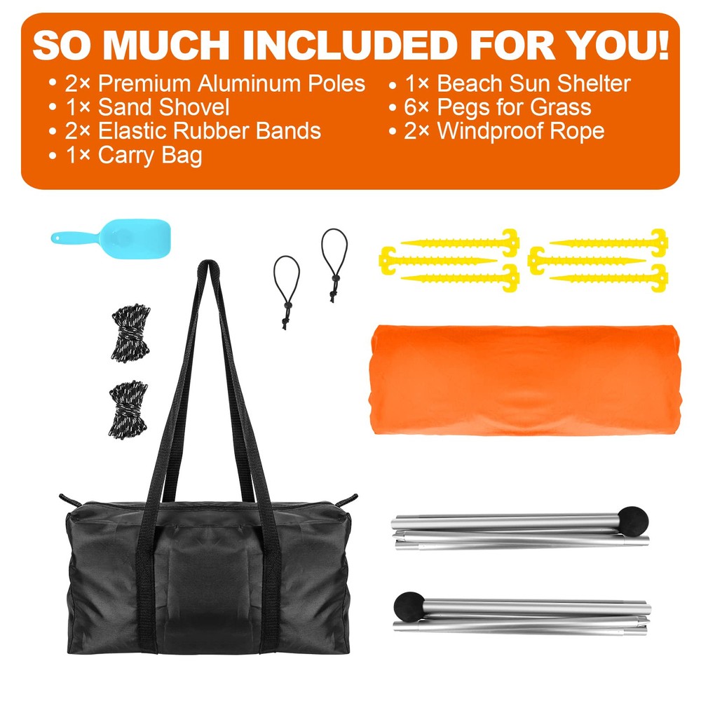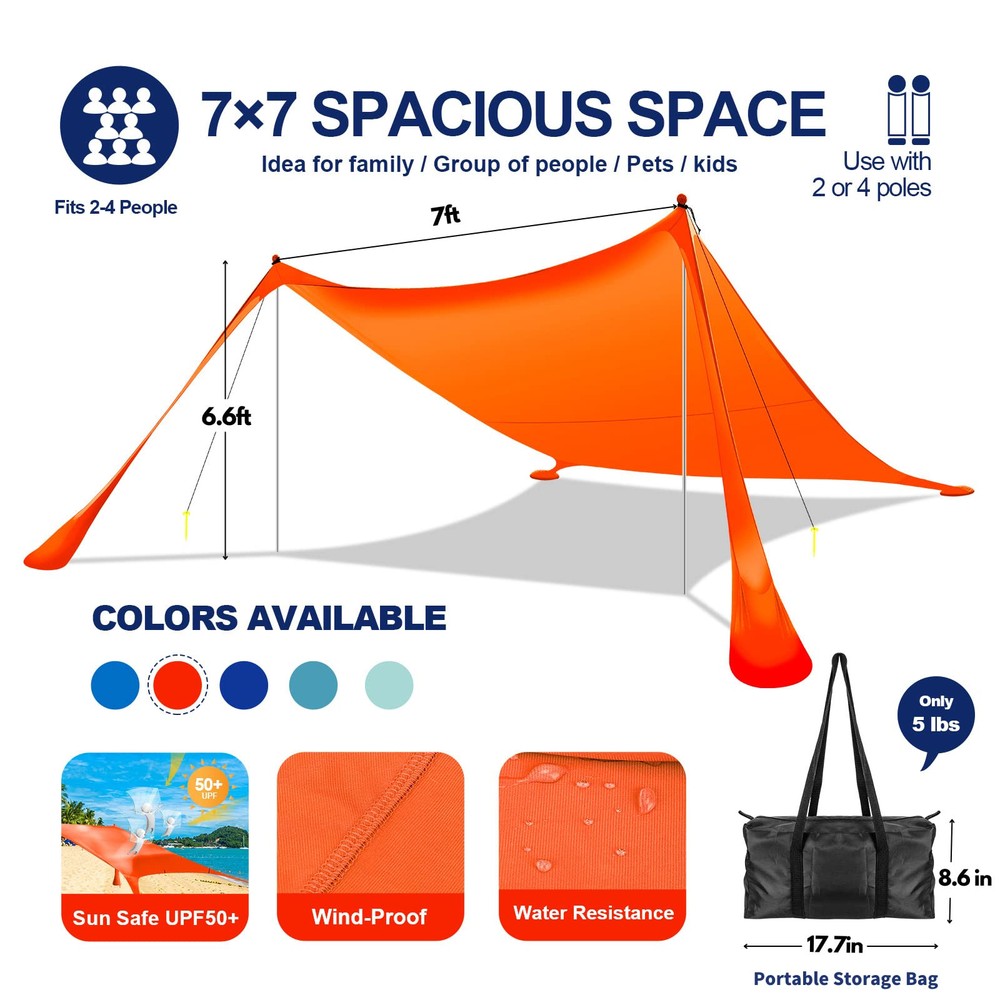 Advanced Sun Protection:The sun canopy is made of advanced stretch water-resistant Lycra fabric with great shape-no wrinkles, offering UPF 50+ sun coverage,block out harmful 98% UV rays. It can protect skin from harm by direct sunlight outdoors, and provide cool shadows,Thousands of families are using this beach sun shelter to keep their kids safe, happy and out of the sun! The Beach Tent will keep you protected on both sunny and rainy days. Sustain Stronger Wind Conditions:Did you tired of chasing blown away umbrellas and folding with clunky foldable tents? We adopted 4 sets of strength rust, bend-proof aluminum poles with a pointed stake at the bottom,unique 4 windproof ropes. Plus, the soft EVA ball at the top of each pole lets you fasten the rubber ball and shelter to hold everything even more securely. These provide a more rigid structure to the canopy, the shade is able to sustain stronger winds. Quick And Easy Outdoor Set Up: You won’t be in the sun for long time, just in minutes, you can fill the sandbags, assemble and upright the poles. At the same time, the open design on all sides allows air to flow freely under the tent, preventing uncomfortable stuffiness. And you can also enjoy the beautiful scenery on all the sides. Large Space& Adjustable: The beach sunshade tent are Large(10*10)ft can accommodate 6-8 person, Medium(7*7)ft 3-4 person. This high aluminum poles keep entire canopy area stays at full height that increasing the shaded area by 50% and accommodating more people. As the sun moves, simply move the sandbags or adjust the position of poles to change the angle of the shade for getting a perfect shadow and keep enjoying the outdoors. Super Portable&Widely Use: Comes with a portable and convenient free storage bag with a handle. you can easily fit our sun shade tent in your luggage, only 7lb, carry it anywhere without any hassle. This portable pop up beach tents sun shelter can become your go-to companion when going to the beach, park, picnic party, fishing, music festival, backyard barbecue or even in rocky camping spots.
